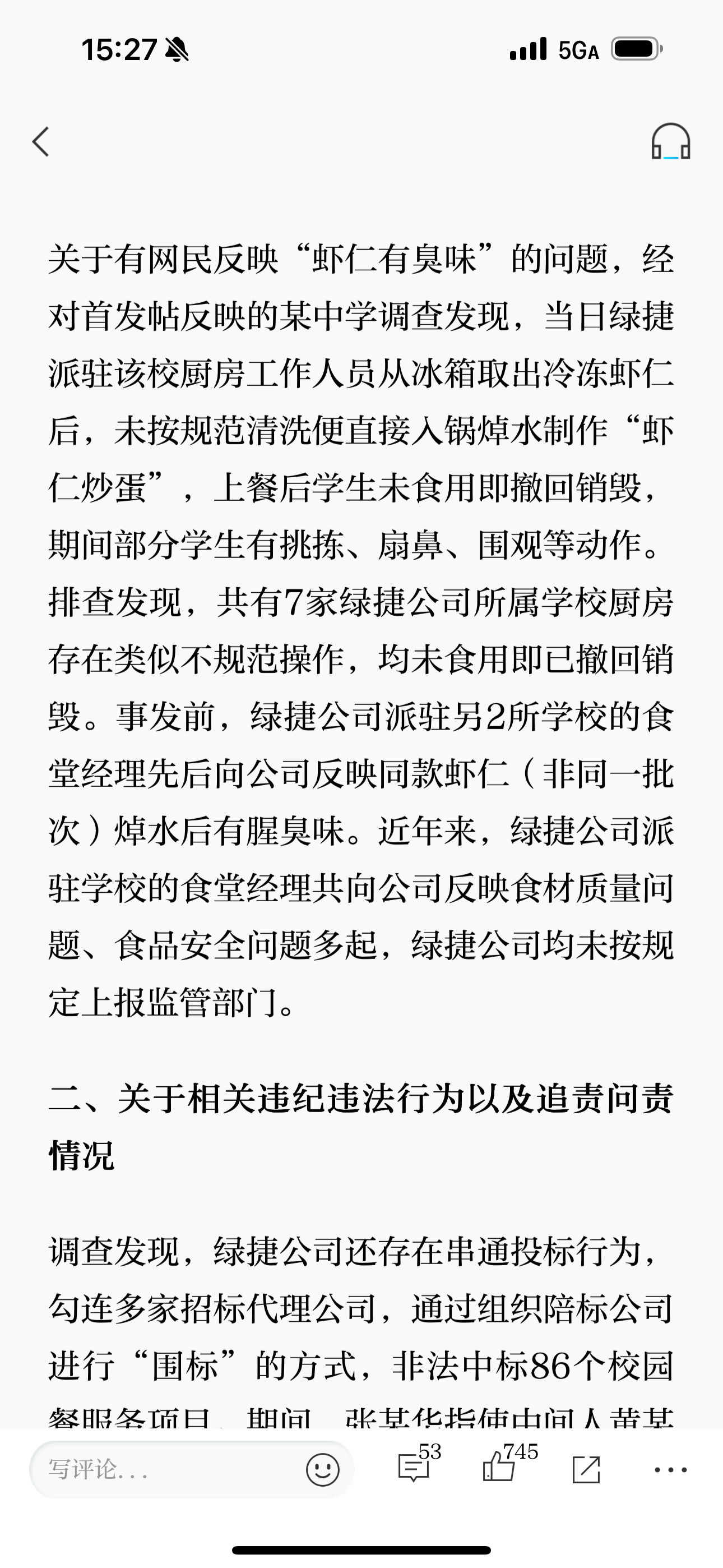 1.等于说,这批虾,在入境前,就已经生虫发臭了,那么是怎么检查把关的?2.食堂发现之后,没有上报,而是瞒报,这是不把食品安全,尤其是校园食品安全当回事;3.竟然不清洗,直接焯水制作餐食,完全不可思议!当然,也完全可以想象得到,毕竟,太多人不负责任了!4.串标,围标,这几乎不是什么奇怪的事儿了,只是出问题了说事儿了,那么怎么前置发现?要知道,凡是串标围标的,都是利益交换的,都是大概率有问题的,怎么避免?5.每次都是事情爆发了,才一查一连串的问题,这种发现机制,按理说也可以,但不能总靠舆论关注,毕竟,关注的都是少数!6.食品安全,尤其是校园食品安全,必须真正的重视起来,要知道,这还是大城市的情况!
