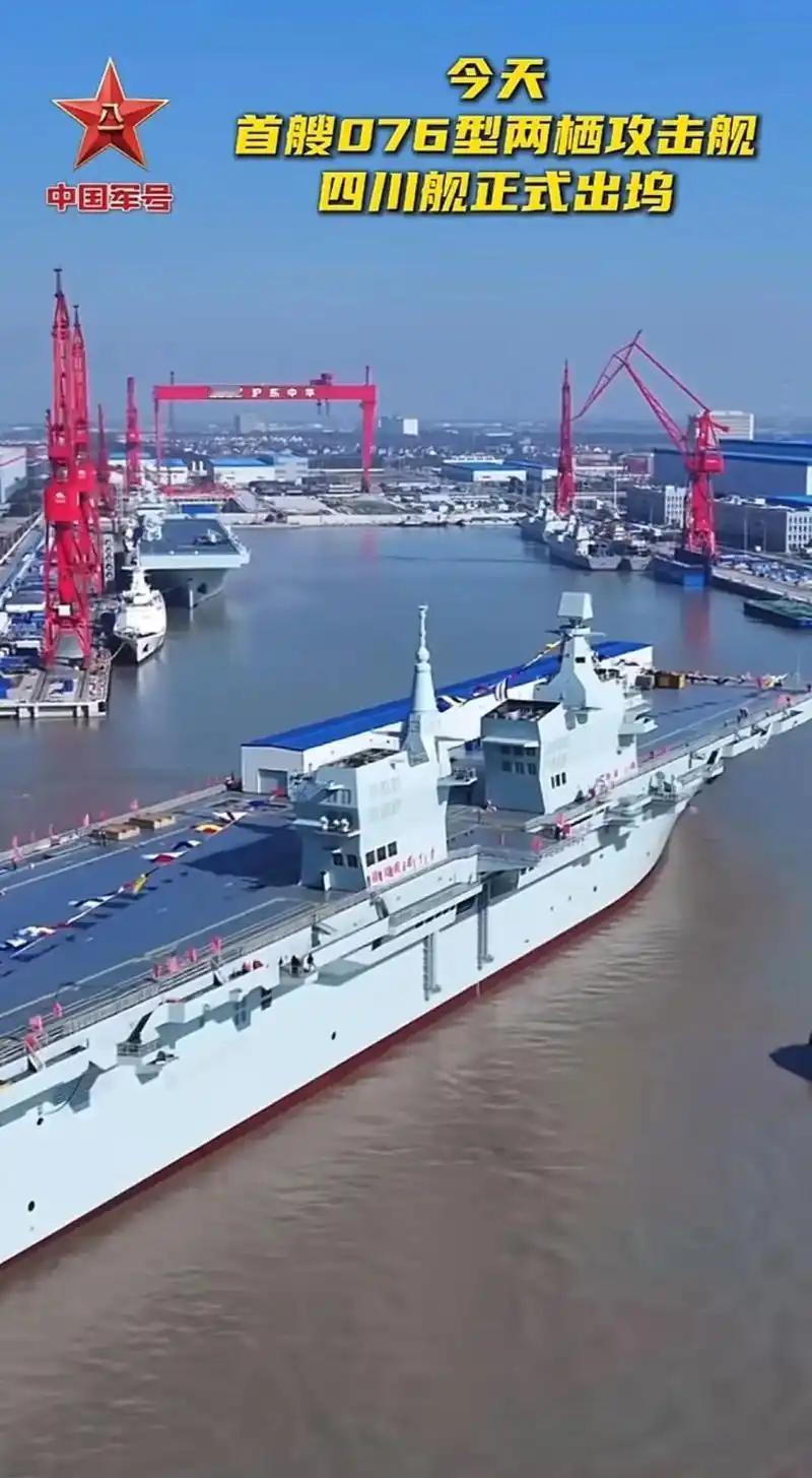【其实是海陆空三栖:076两栖攻击舰四川舰首次航行试验:人民海军迈入两栖作战新纪元】2025年11月14日,上海沪东中华造船厂码头,我国076型两栖攻击舰首舰四川舰解缆启航,赴相关海域开展首次航行试验,标志着这款全球首创的弹射型两栖攻击舰正式进入实战化验证阶段。技术亮点。作为海军新一代关键装备,四川舰的技术亮点堪称颠覆性突破。它可是有着全球首艘集成电磁弹射与阻拦系统的两栖攻击舰,4万余吨的满载排水量(外界分析接近5.5万吨)超越法国“戴高乐”号核动力航母,搭配燃气轮机+柴油机的全电推进方案,动力输出稳定且高效 。双舰岛设计与全纵通飞行甲板的组合,不仅优化了甲板调度效率,更支持歼-35隐身舰载机、空警-600预警机及大型攻击无人机的弹射起飞,彻底摆脱传统两栖舰对垂直起降模式的依赖,实现固定翼战机“满油满弹”出动,单日出动架次可达百架以上!而且从开工到下水仅用一年出头的建造速度,更彰显了我国造船工业的硬核实力。战略定位。四川舰重构了两栖三栖作战的核心范式,成为连接近岸防御与远海机动的关键节点。它不再局限于传统两栖攻击舰的兵力投送职能,而是集“准航母”制空能力与两栖突击能力于一身,战斗力直接漂移,既能搭载一个两栖作战营的兵力及4艘气垫登陆艇执行立体登陆任务,又能与航母、驱护舰组成特混编队,在远海构建分布式作战体系 。相较于美国“美国级”两栖攻击舰的垂直起降路线,四川舰以电磁弹射+无人机群的创新组合,走出了智能化、低成本的远海作战新路,推动中国海军从“技术追赶”迈向“体系领跑”。作战意义。彻底打破了有人与无人、航空与登陆的作战壁垒。电磁弹射赋予的充分、高效航空作业能力,让四川舰可在1500公里作战半径内提供持续火力支援,无人机“蜂群”与有人战机的协同模式,能实现“无人冲锋、有人控局”的战术优势,大幅提升战场生存力与打击精度 。在岛礁争夺、远海争夺等任务中,它既能为登陆部队扫清障碍,又能扩展航母编队的预警与打击纵深,使我国海军两栖作战能力从“平面登陆”升级为“全域立体突击” 。此次首航试验,是四川舰迈向战斗序列的关键一步。随着这款划时代装备的成熟列装,中国海军维护国家海洋权益、应对复杂海空局势的能力将得到质的提升,为远洋存在与区域安全稳定注入更强劲的中国力量。