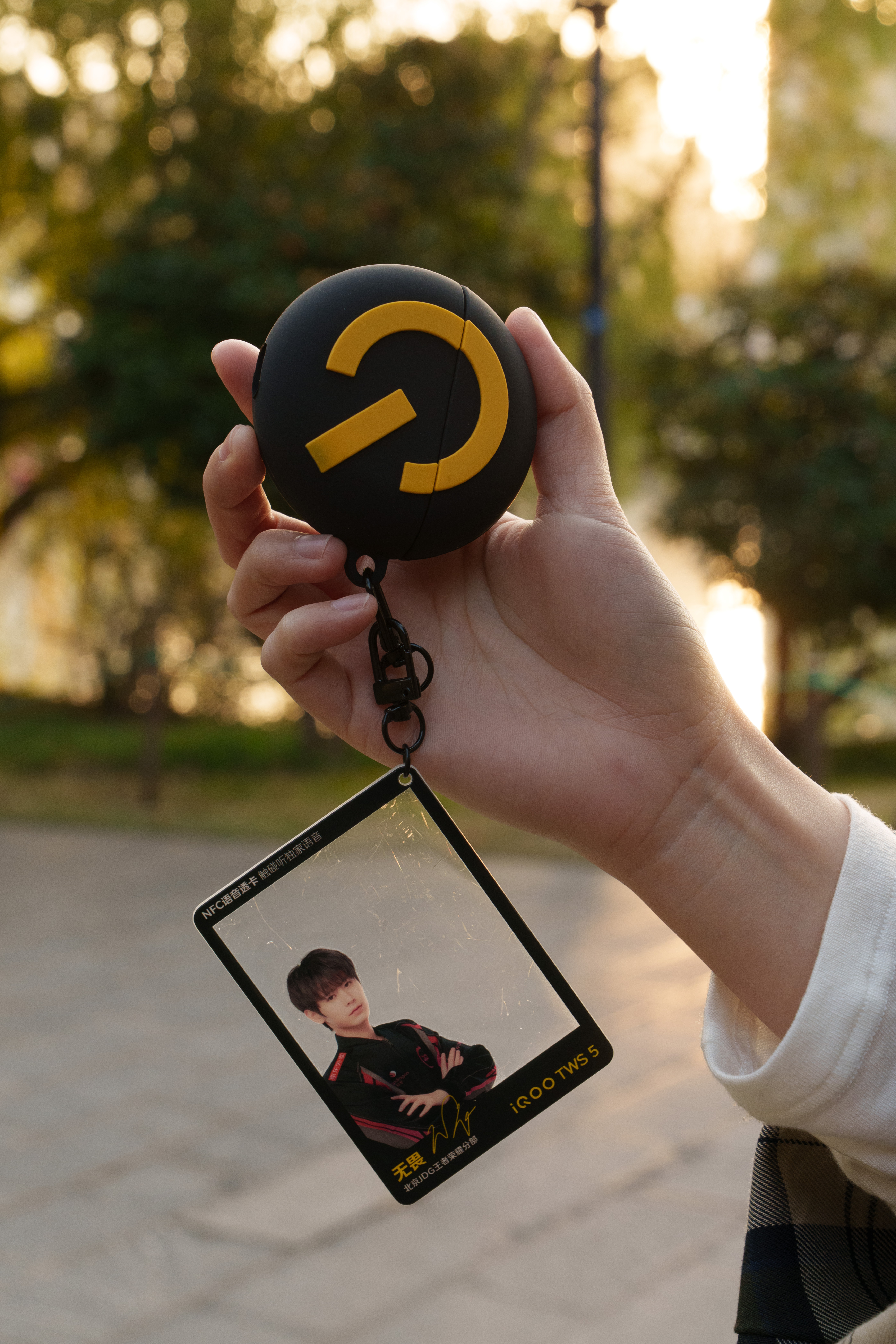 瞅瞅iQOO TWS 5的无畏限定礼盒,“Q”形耳机保护套蛮好,带挂绳、NFC语音透卡和挂件。
