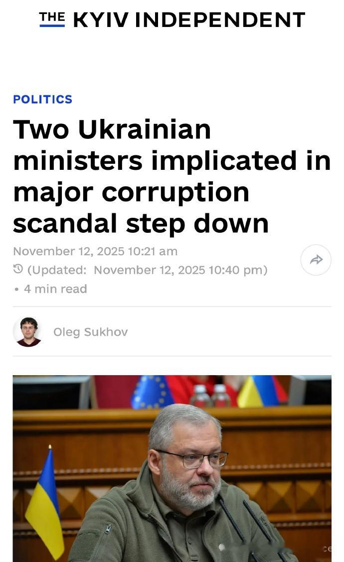 在乌克兰国家反腐败局(NABU)于当地时间周二宣布将调查和拘留乌克兰国家原子能公司贪腐案的更多涉案人员后,周三,乌克兰司法部长、前能源部长赫尔曼·加卢先科和现任能源部长斯维特兰娜·格林丘克双双引咎辞职:两人并未被起诉,但正在接受调查。“RBC-乌克兰”援引内部消息报道称,乌克兰石油天然气公司负责人谢尔盖·科列茨基很可能将接任能源部长,但最终决定将取决于他是否能从乌克兰石油天然气公司离职,乌克兰石油天然气公司跟其他乌克兰能源企业一样,在这场战争中尤其是在俄罗斯军队的空袭中,面临诸多困境和考验。谢尔盖·科列茨基今年5月才成为乌克兰石油天然气公司负责人,在乌克兰能源领域工作多年,具有丰富工作经验。除了赫尔曼·加卢先科和斯维特兰娜·格林丘克外,发生在乌克兰国家原子能公司的这起贪腐大案还涉及到其他乌克兰政府高官,包括前副总理奥列克西·切尔尼绍夫以及前国防部长、现任国家安全与国防委员会秘书鲁斯捷姆·乌梅罗夫等人,尽管这些高官尚未被起诉,但一些涉案人员已经被拘留,诸如个体企业家柳德米拉·佐里娜,法院判决将其羁押60天,保释金1200万格里夫纳。在这起贪腐大案里,最重要的人物自然是泽连斯基的密友帖木儿·明迪奇,被指控为本案主谋,他在调查人员到达他的住宅前几个小时,就于深夜中紧急离开了乌克兰,很显然获得了准确消息。