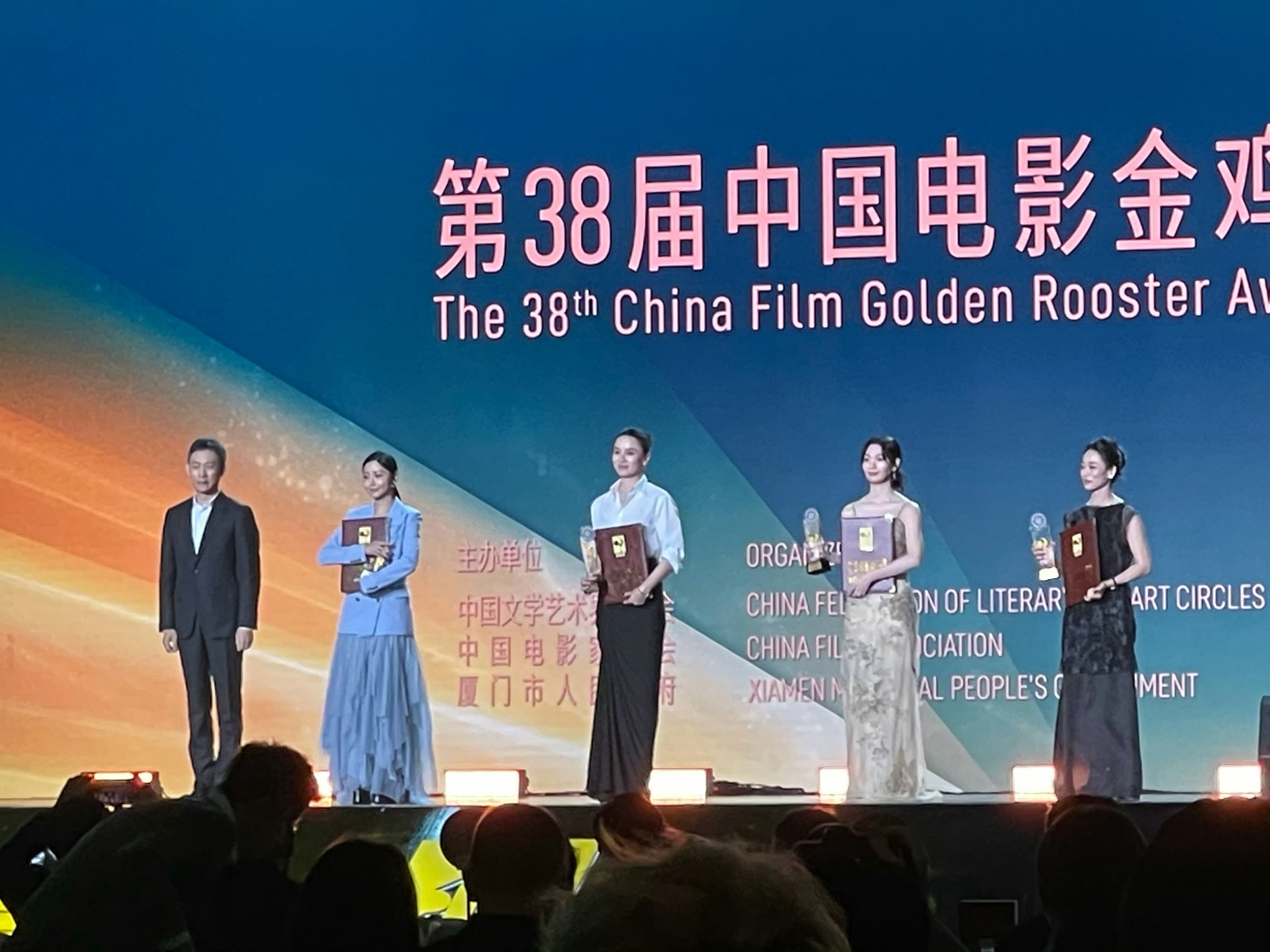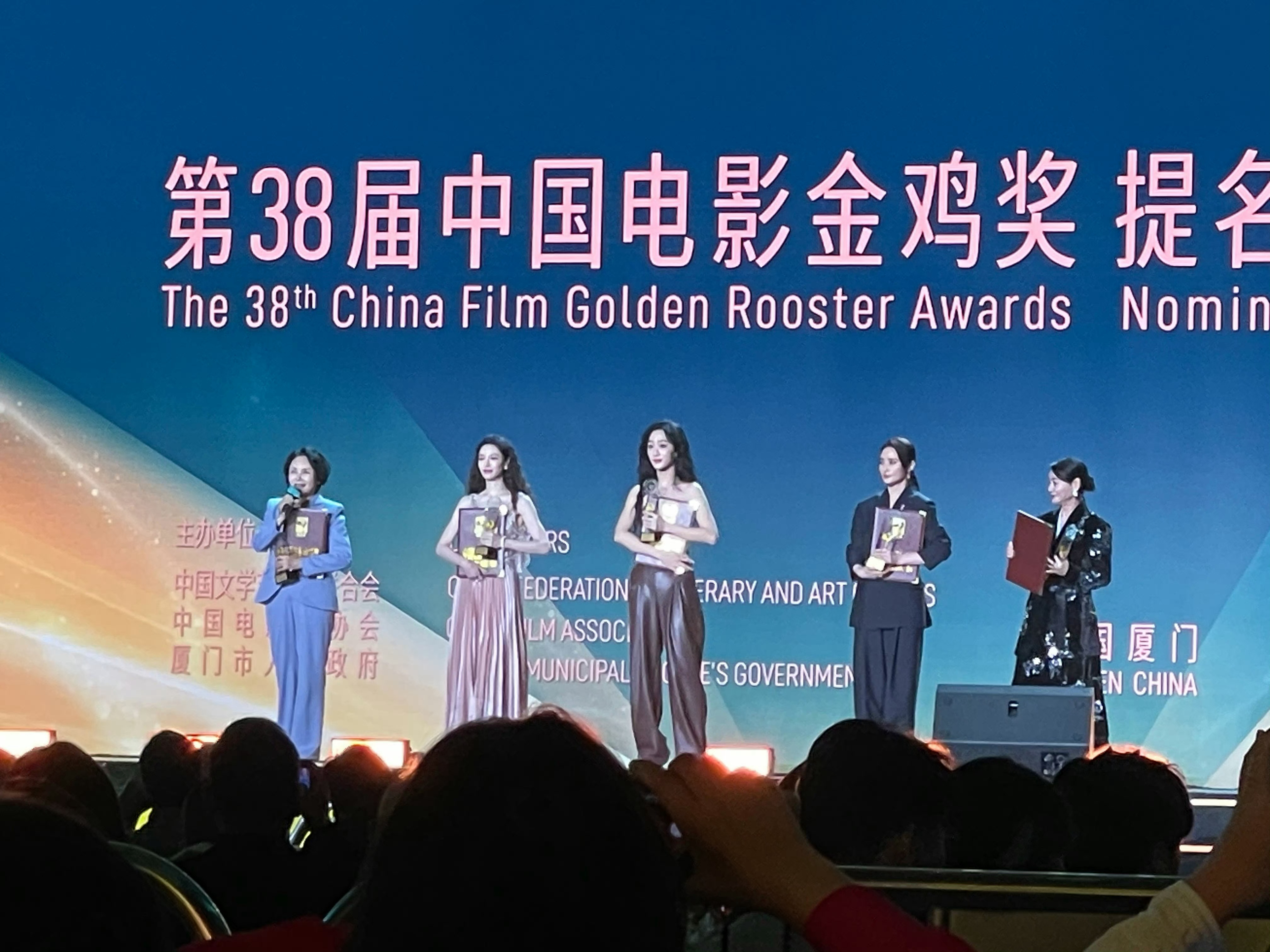 第38届金鸡奖提名者表彰仪式,评委张译、岳红为本届金鸡影后影帝提名者颁发表彰。?