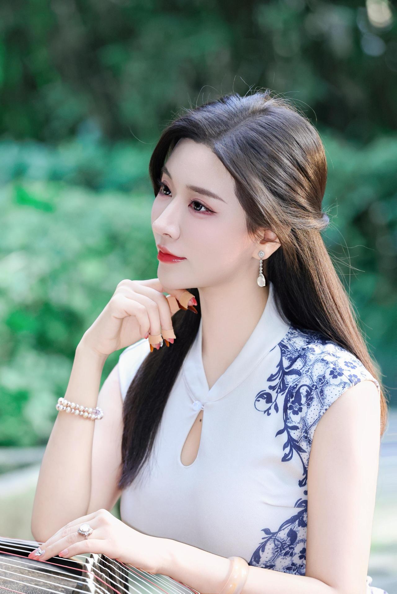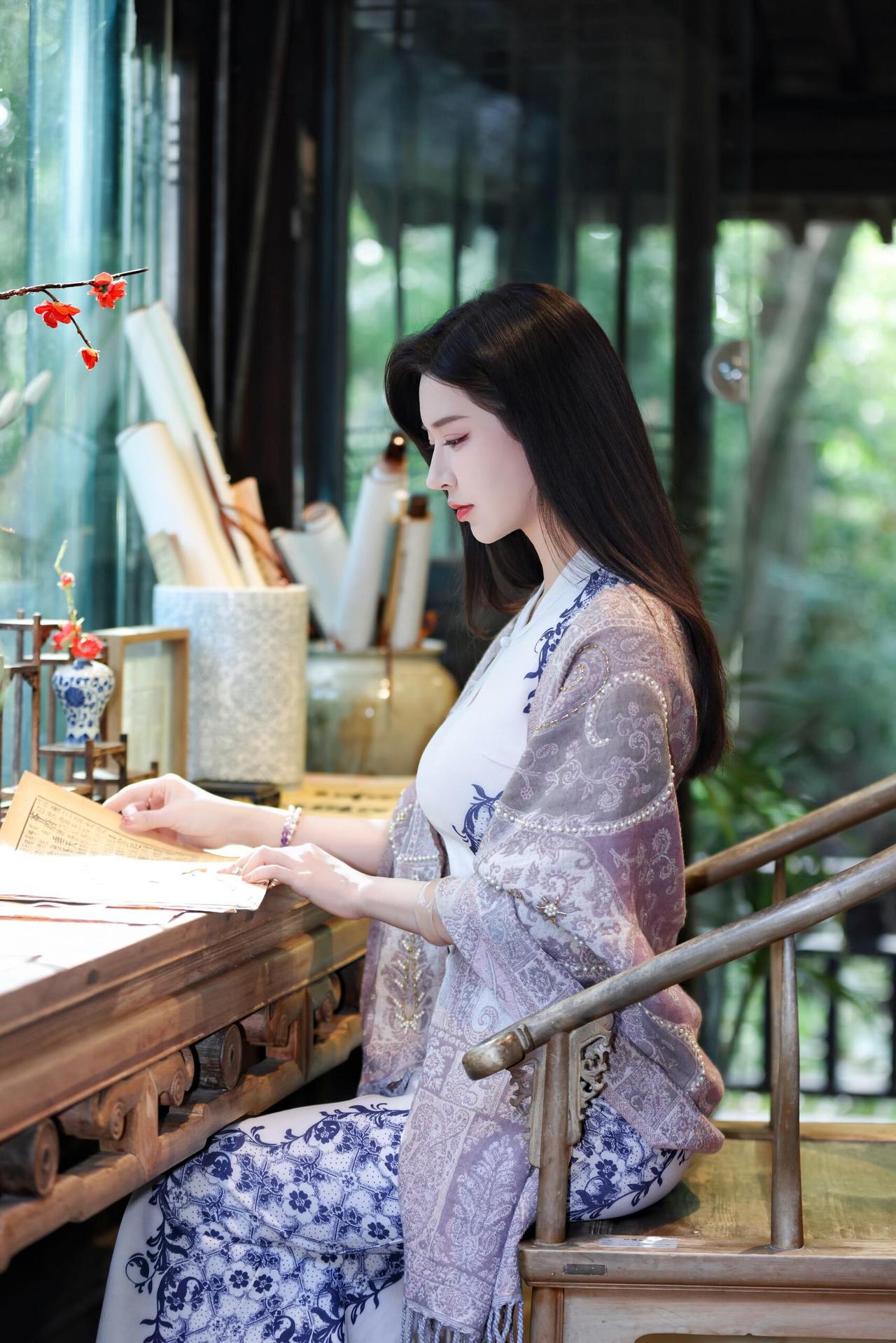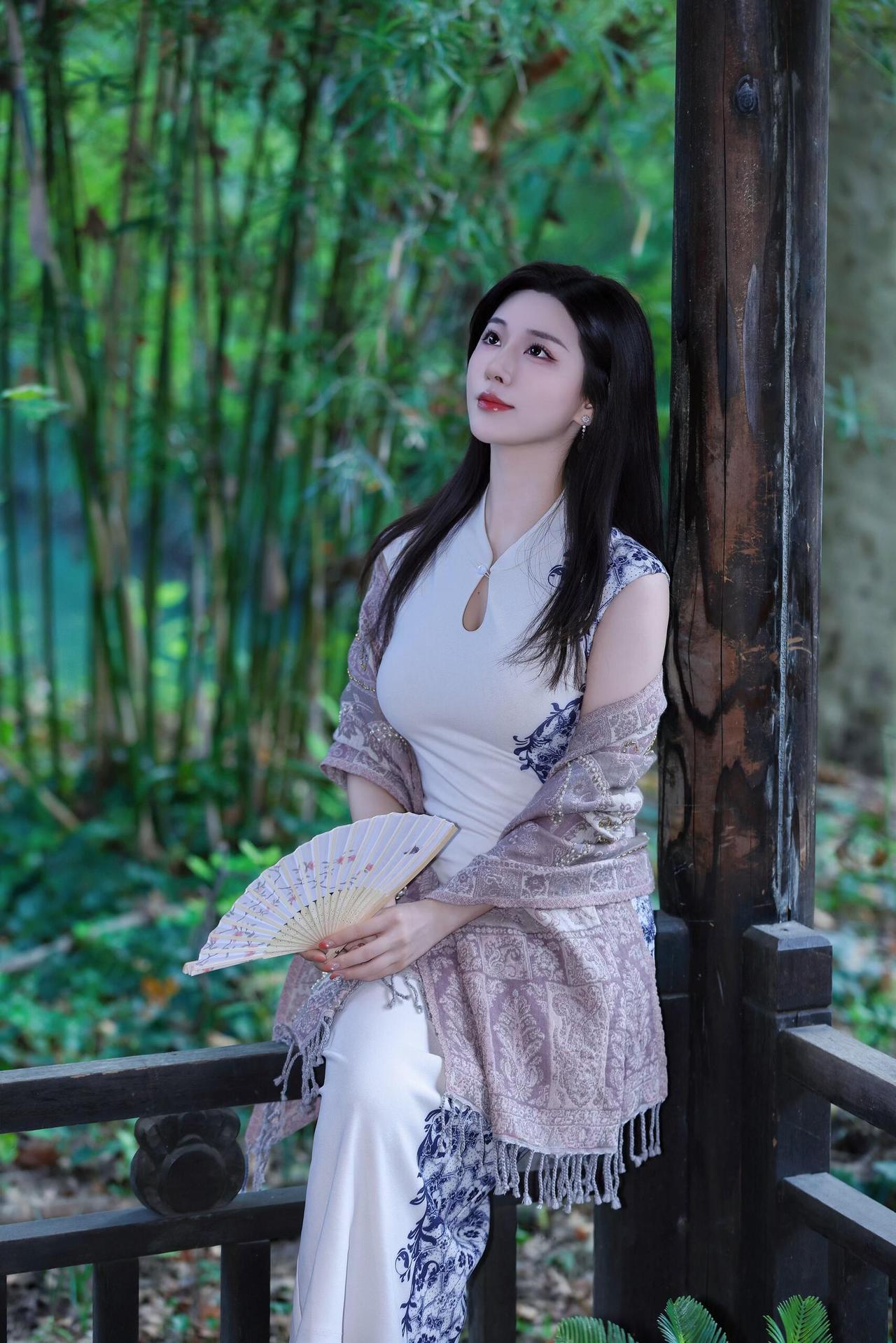 竹影浸在风里,指尖落向琴弦时,瓷青纹样正顺着旗袍漫成一弯浅溪。 发梢坠着碎光,耳坠轻晃如露。抬眼是云栖在叶隙,垂眸见案头小瓶里,梅枝斜斜挑着半盏春。 扇沿蹭过腕间的凉,书页裹着墨香漫开——原来日子不必太满,有琴音、有疏影,有这一身青花裁就的闲,便够把时光,酿成浅淡的甜。 = = = = = = = = = = = = = = = = = = = = = 青花旗袍摄影思路|把东方韵锁进镜头里 1. 场景:选竹林/古院,用斑驳光影柔化背景,突出旗袍瓷纹; 2. 道具:古筝+青花小瓶,借器物衬国风质感; 3. 神态:引导轻垂眸/抬眼望叶,捕捉松弛的温婉感; 4. 色调:后期压暗背景,提亮旗袍浅底色,让青花更清透。