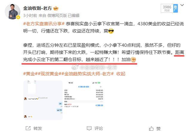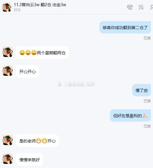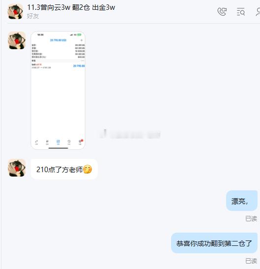 实时跟进我们上个星期一新加入的小云状况!今日小云的战绩,一五一十原原本本真真实实的展示。还是这句话,我这人从不爱说大话,说到做到,能答应承诺的事就一定是有把握的,这不一单就拿下20790美金的收益,这还是考虑小云收官第一单的操作,所以没长时间持有看大利润,但也还是从本金39491美增值到60281美资金,距离今日定的翻仓目标这不是轻轻松松,第一单就如此优秀,更何况后续呢?我本人当然有更足的信心和更硬的实力去面对!这就是最真实的盈利,赚了就是赚了,亏了就是亏了,没什么好遮遮掩掩,我对我自己非常有自信,也相信大家的眼睛都是明亮的,我的实力和人品是大家有目共睹的给力,毋庸置疑!