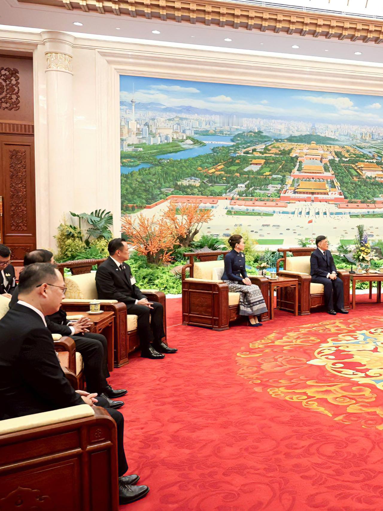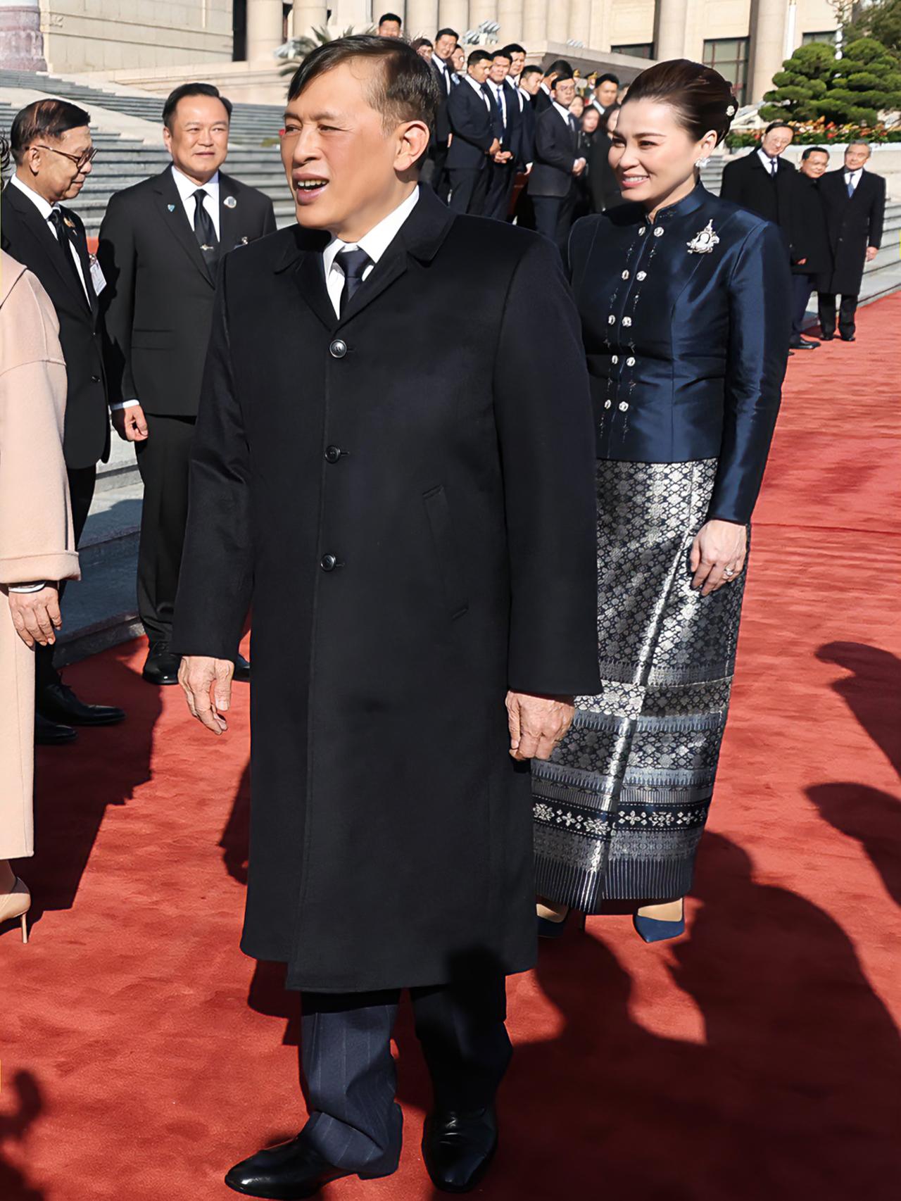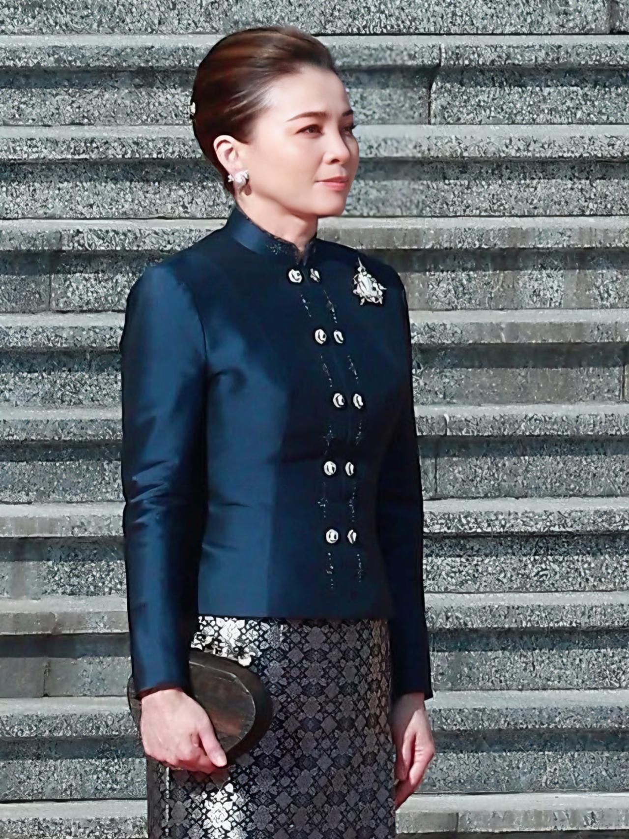 苏提达王后闪耀国宴,一袭蓝色泰式礼服好美 苏提达陪伴泰王访华,一袭深蓝色泰式礼服