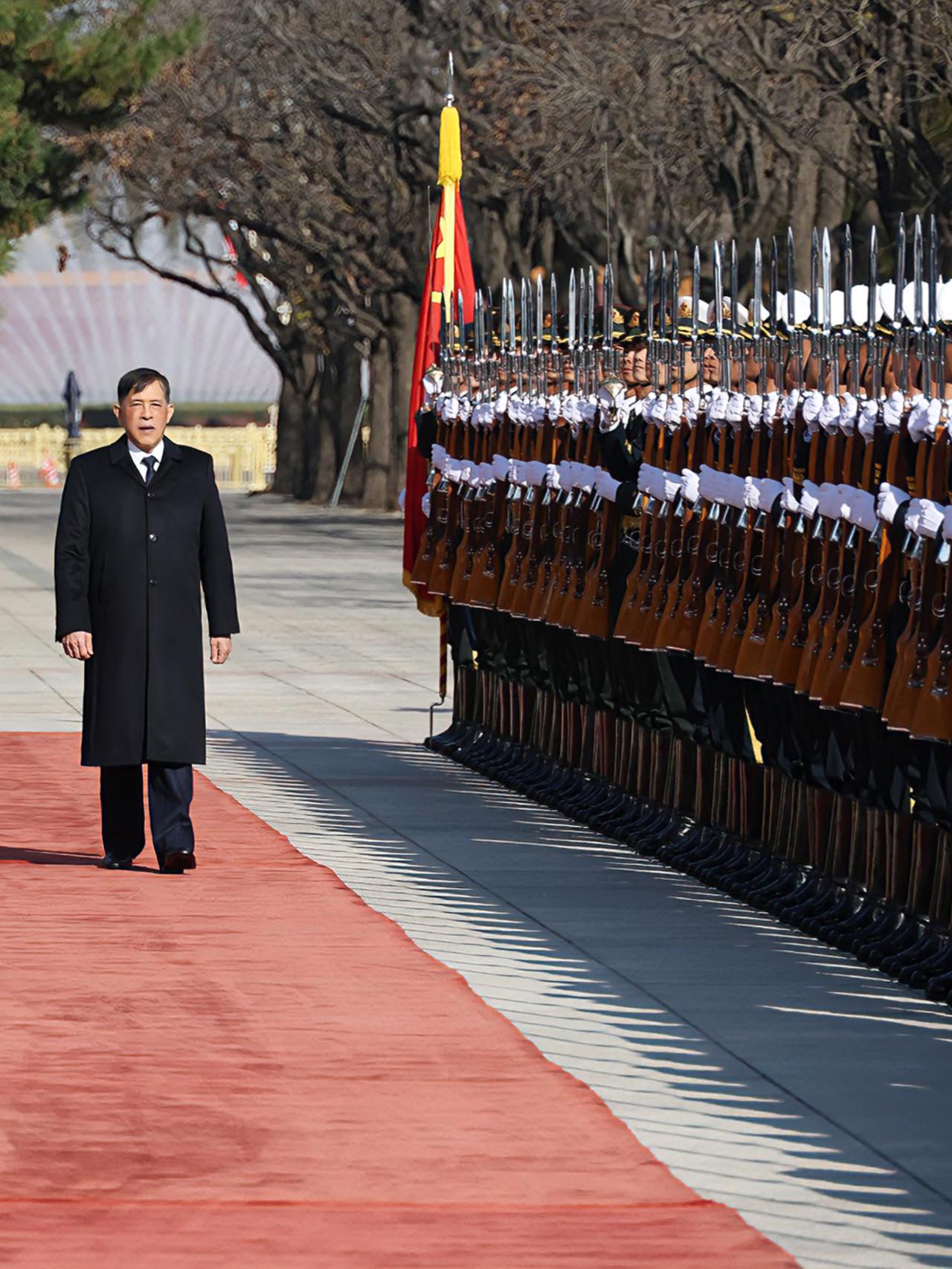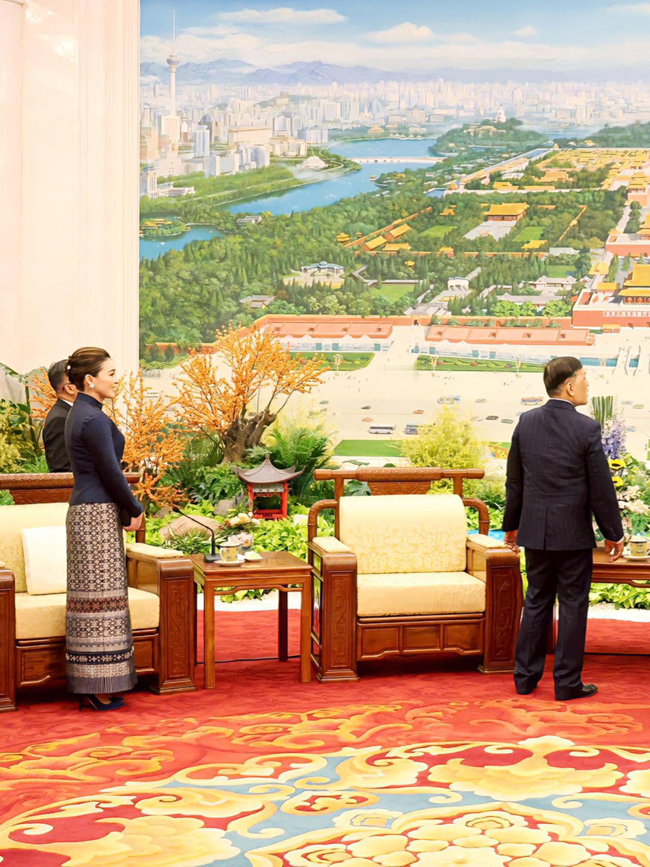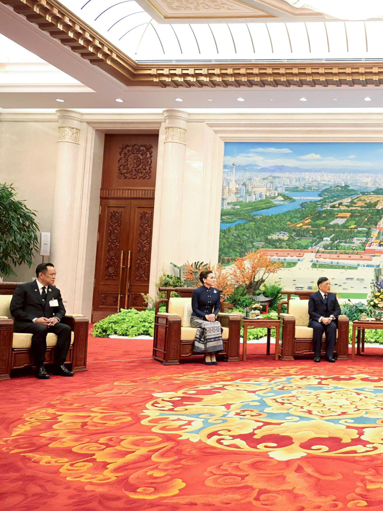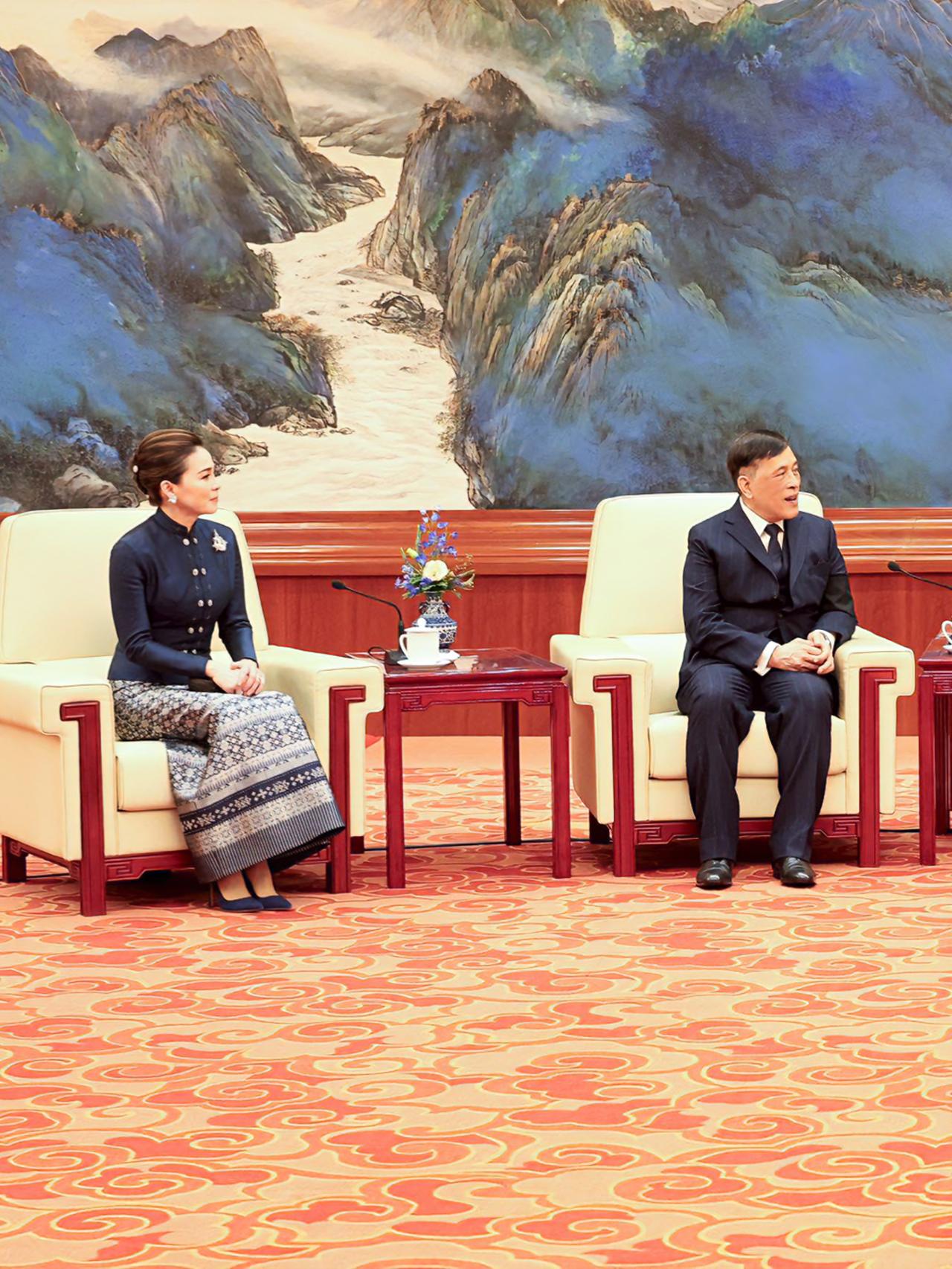 苏提达王后闪耀国宴,一袭蓝色泰式礼服好美 苏提达陪伴泰王访华,一袭深蓝色泰式礼服