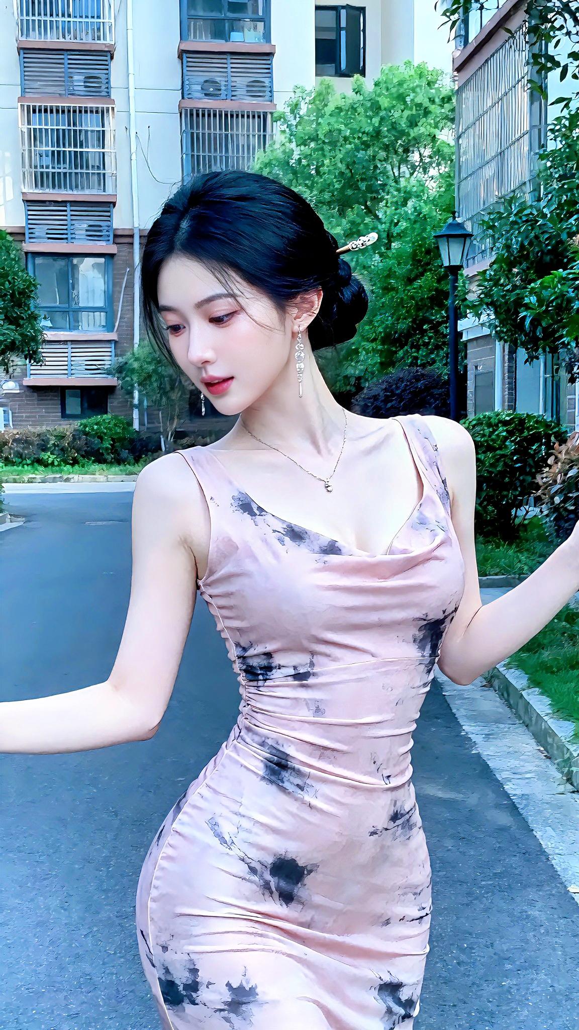 清新夏日穿搭,粉色印花吊带裙,甜美又时尚!