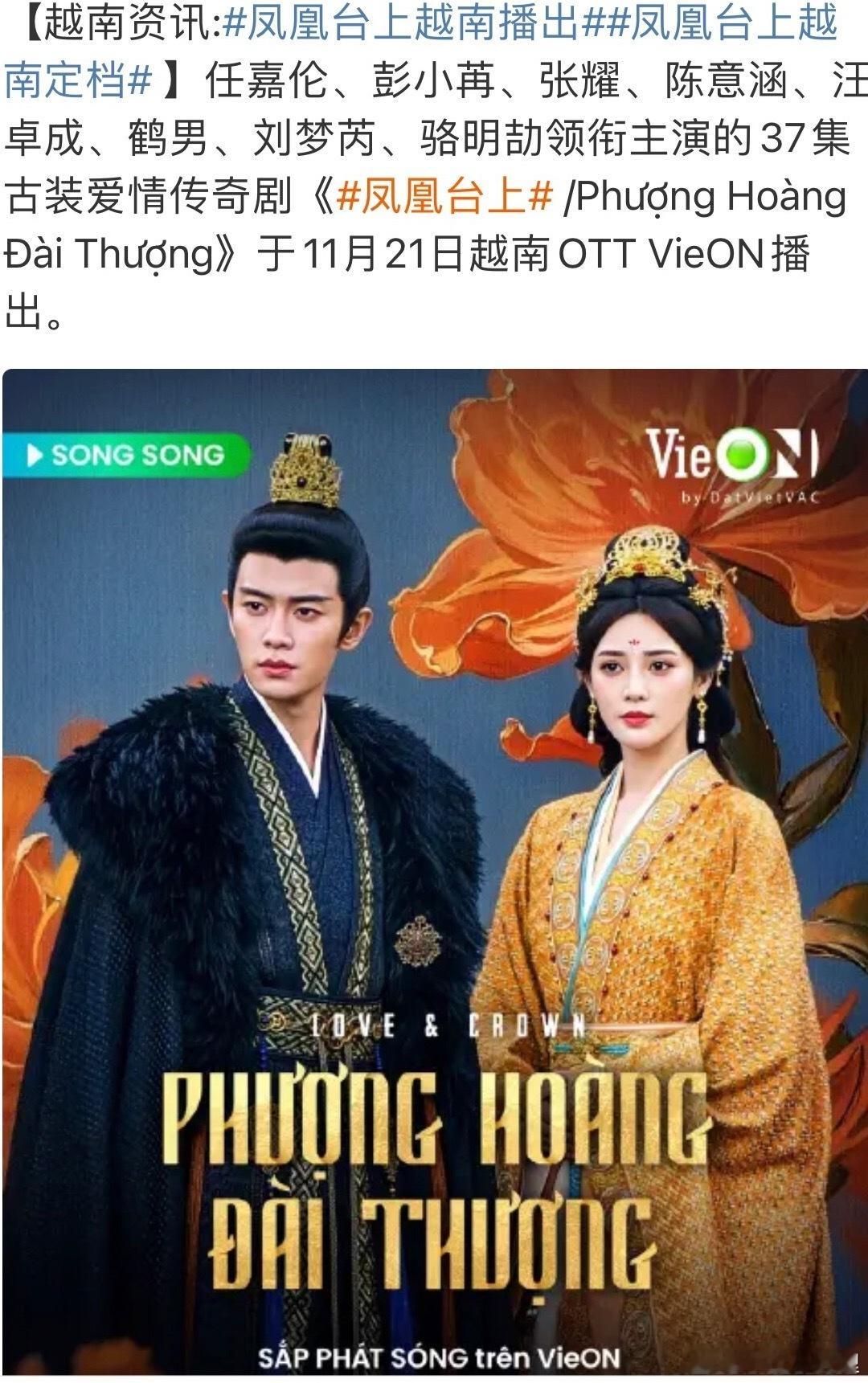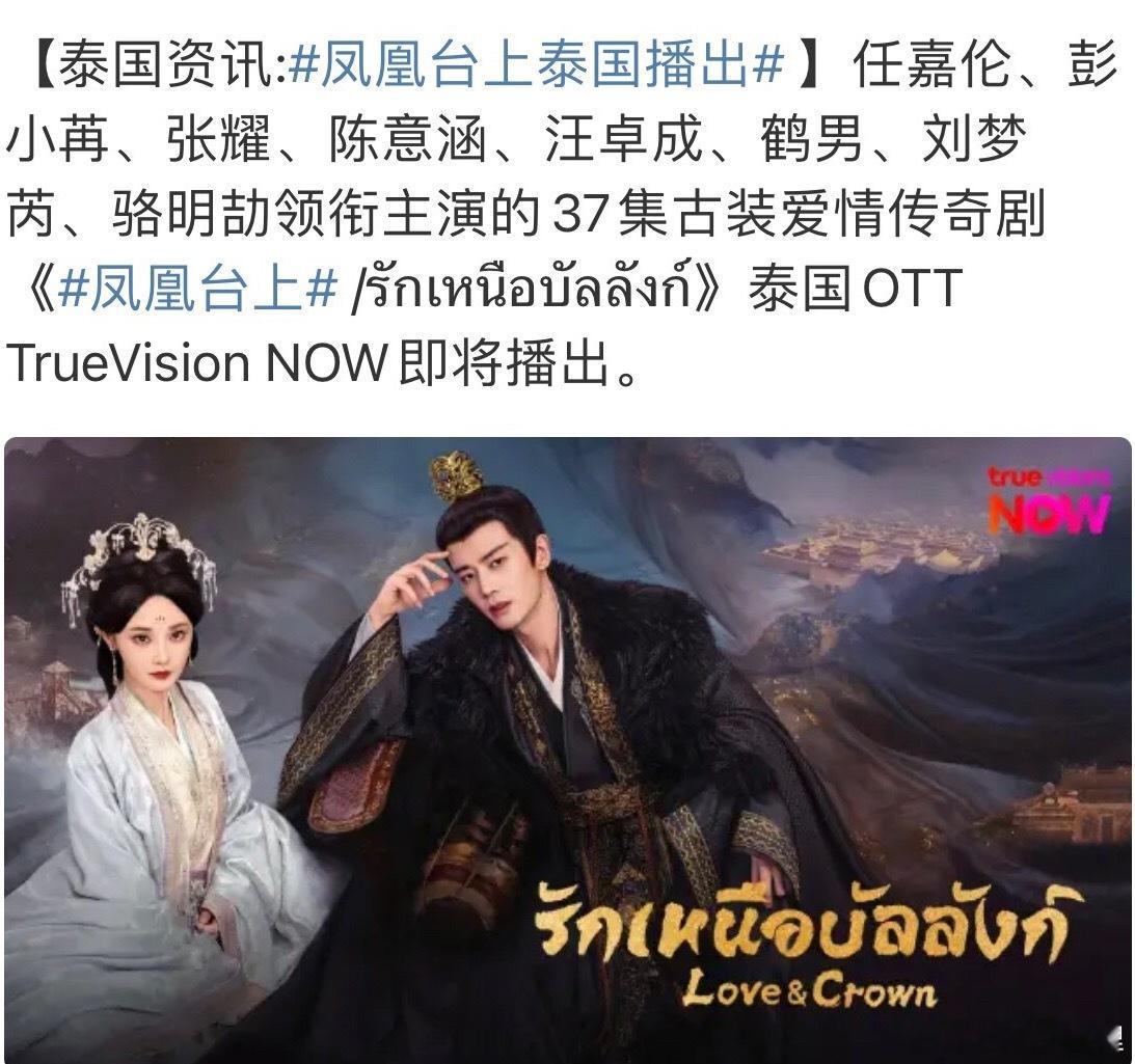 由任嘉伦主演的凤凰台同步上线Netflix,泰国,韩国,越南,中国台湾,香港,一