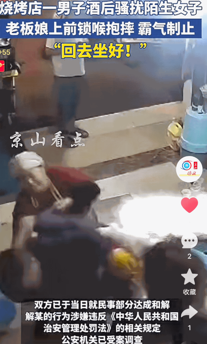 幸好烧烤店老板娘壮硕如牛,否则,真不一定能震慑得住猥亵男! 10月18号凌晨,昆明某烧烤店,一醉酒男子见一女子貌美,遂笑嘻嘻上前挡在面前,不让她过去。 女子见状,急忙往右闪躲,醉酒男也跟着往右,女子往左,醉酒男子又跟着往左,反正就是挡在她面前,不让她走。 这时,女子男朋友发现异常,急忙从餐桌上跑过来,大声喝斥醉酒男。但没想到醉酒男不但没有退缩,反而吵吵着娩起袖子,准备和女子男朋友动手。 眼看一场冲突不可避免,这时,此店的老板娘出现了,她膀大腰圆往那一站,霸气的让醉酒男子坐回去,但醉酒男子哪里肯听,还想窜过去和女子男友动手。 于是,老板娘不由分说,走上前,用大粗胳膊搂住醉酒男子,然后狠狠一个抱摔,就把醉酒男撂倒在地。 醉酒男子这才认清了现实。 看来,在某些特定人面前,单靠礼貌解决不了任何问题,拳头才是真理。最硬气的老板娘