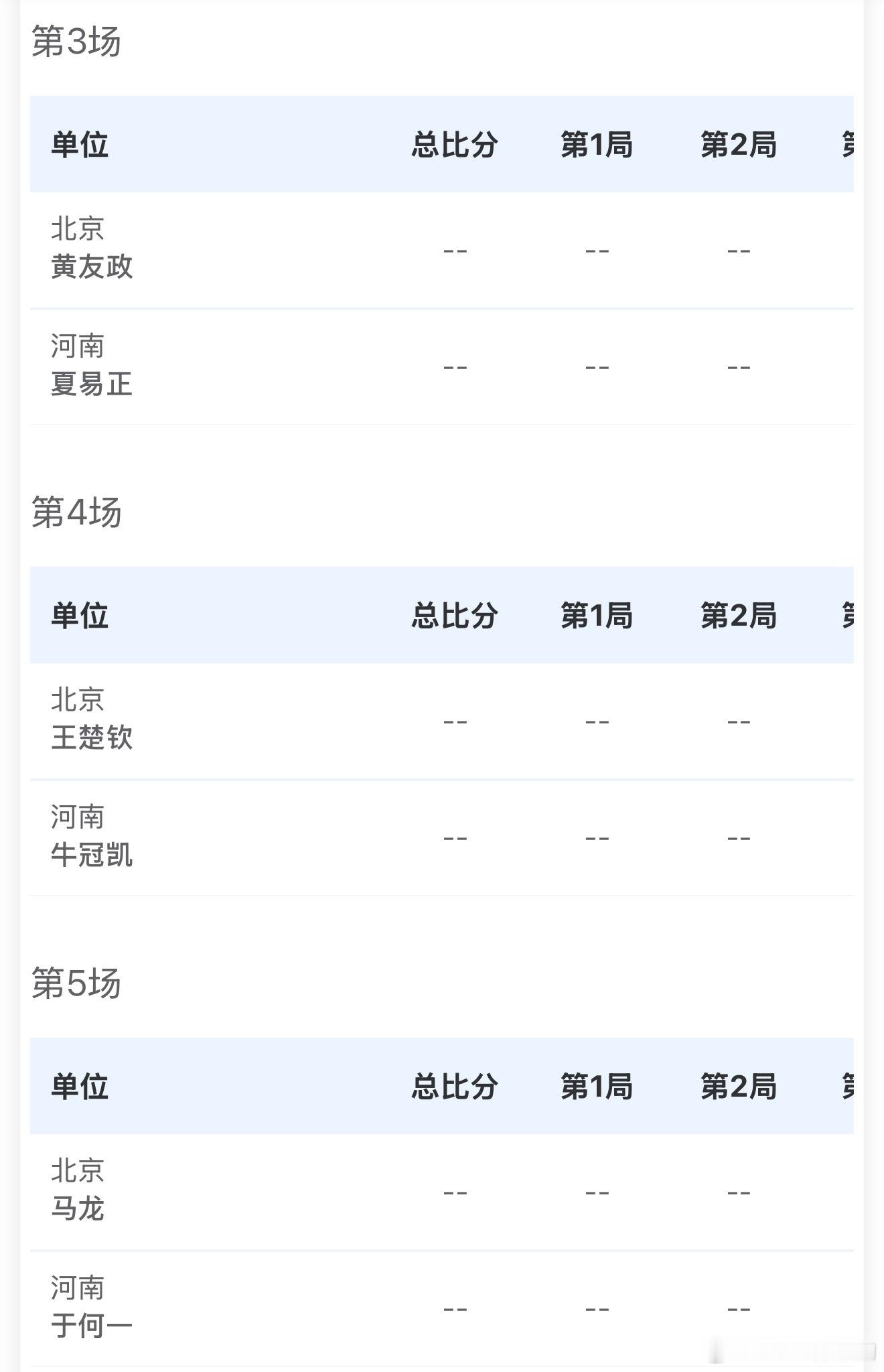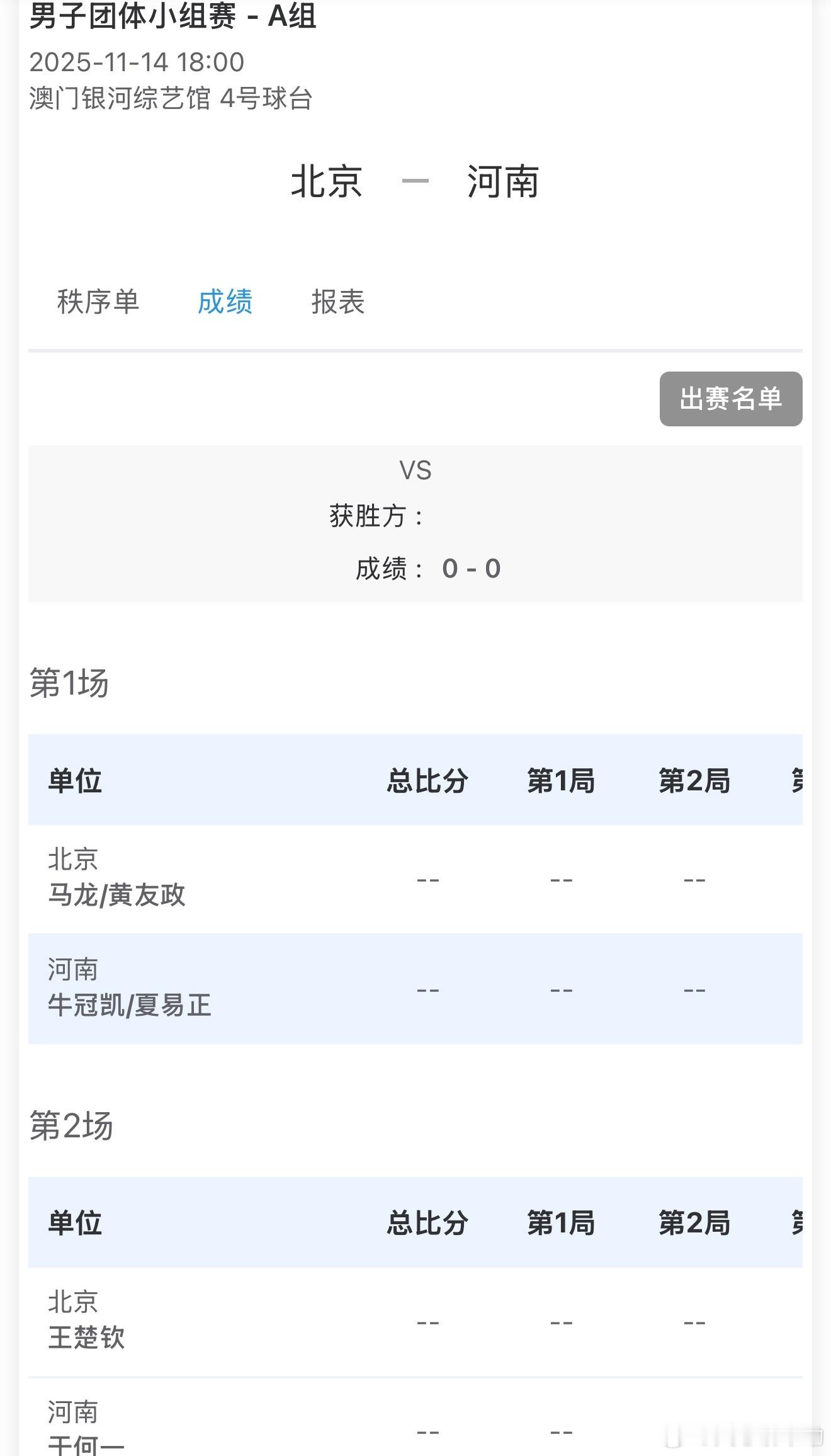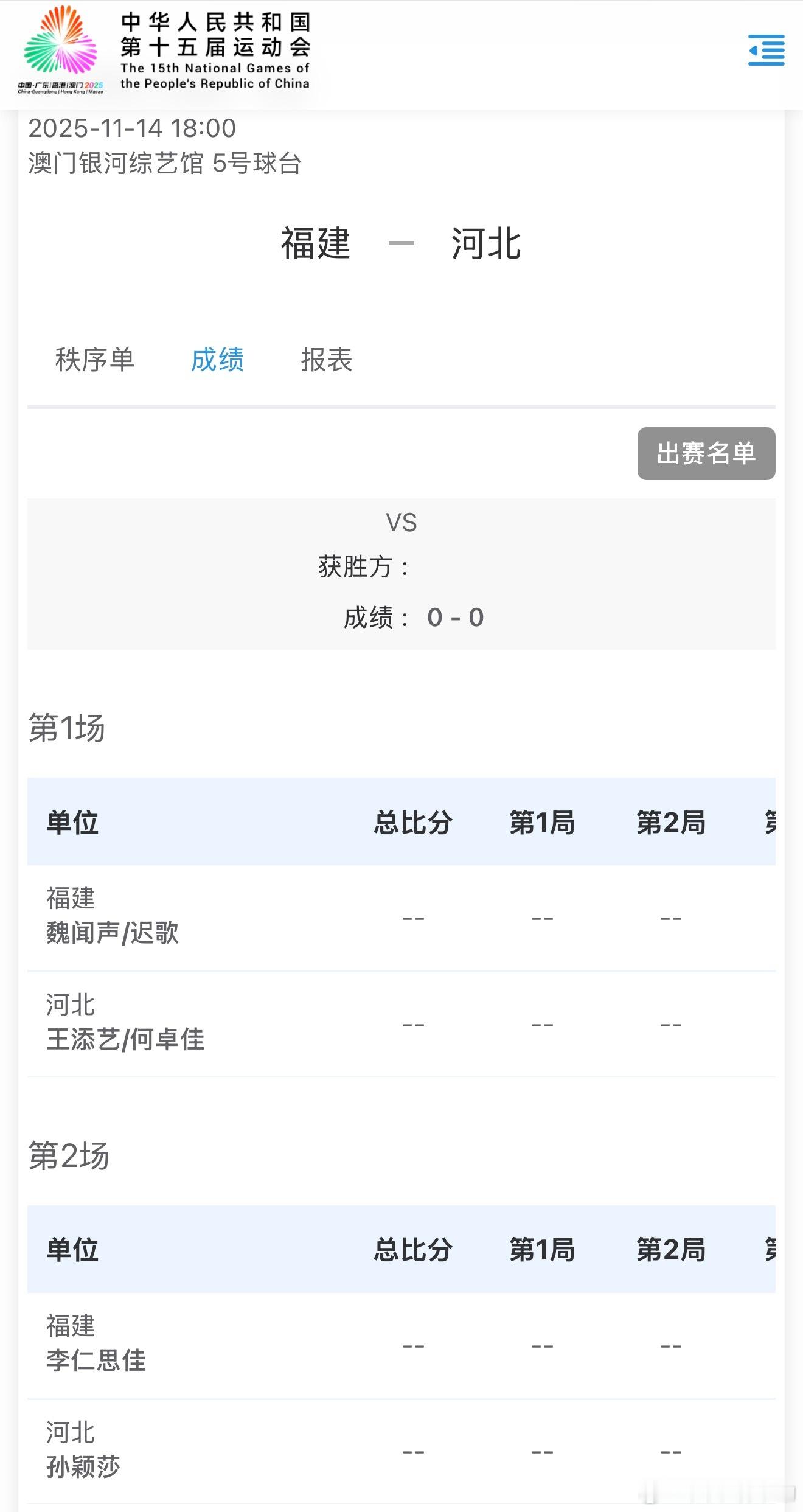第十五届全国运动会丨11月14日赛程大头出战第二盘和第四盘莎莎出战第二盘和第五盘