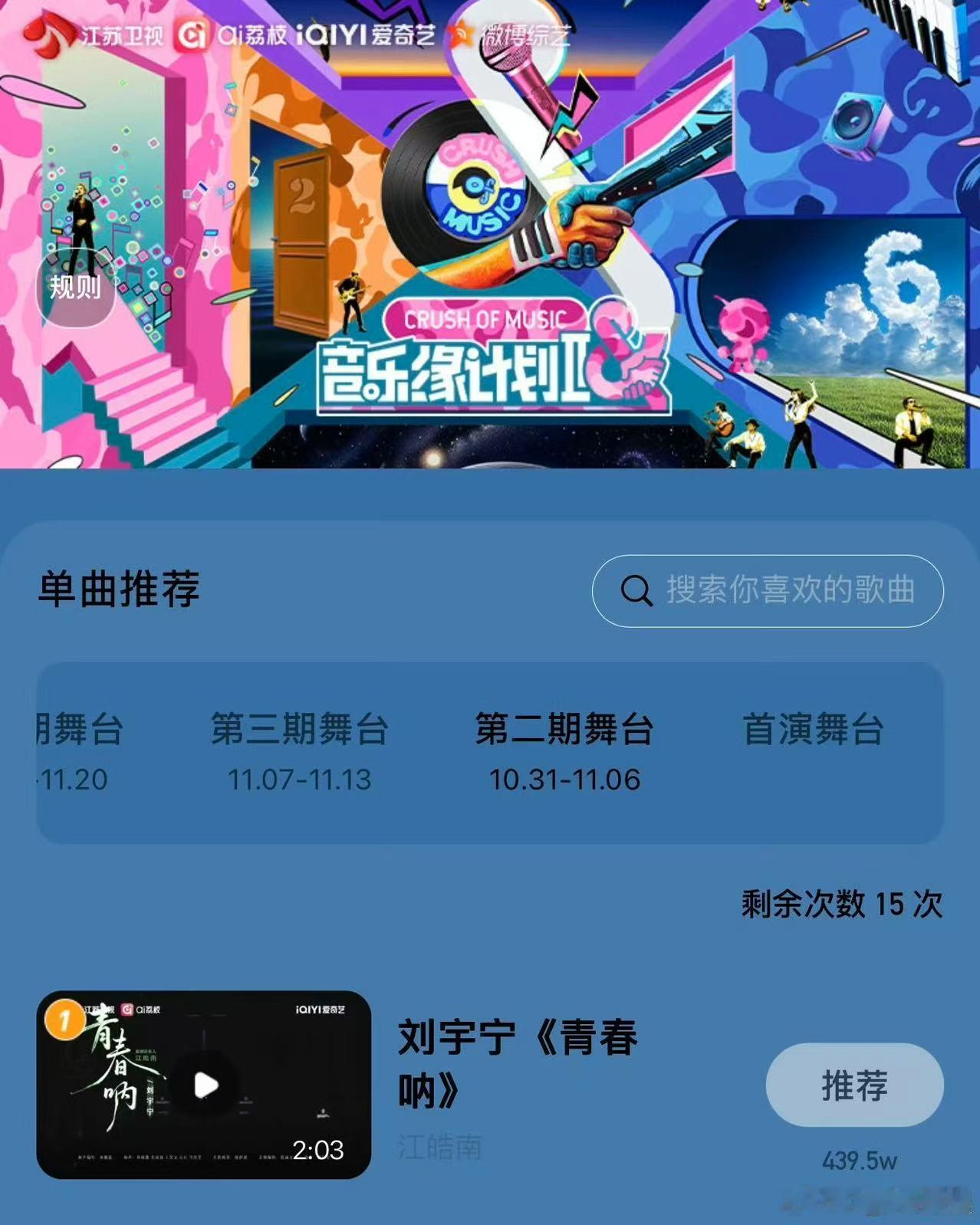 在《音乐缘计划2》舞台上,刘宇宁连续三周带来精彩演出!从深情独唱到默契合唱,他完美驾驭不同风格,用音乐实力征服观众,展现全能唱将风采!