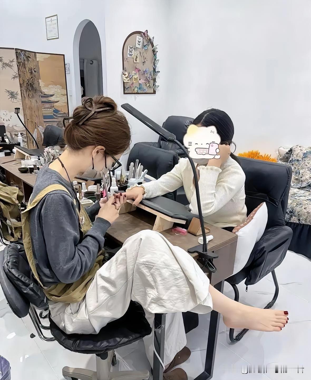 今天跟同事去做美甲,看到美甲师的姿势,我都想过去抽她,但是再仔细一看,我会心的笑了。 你说作为服务行业,小姑娘人长得挺水灵,可是给同事做个美甲,竟然自己把鞋脱了,把袜子也脱了,还把腿翘得老高,咱先不说你脚有没有味,就是这个态度,是对顾客该有的吗? 可是,当我看到她脚趾甲的颜色和给我同事做的一样,原来她是在展示自己的作品,也是给自己打广告,说明自己手艺好,这小丫头真聪明,拿自己当活广告了,怪不得她这生意这么好。