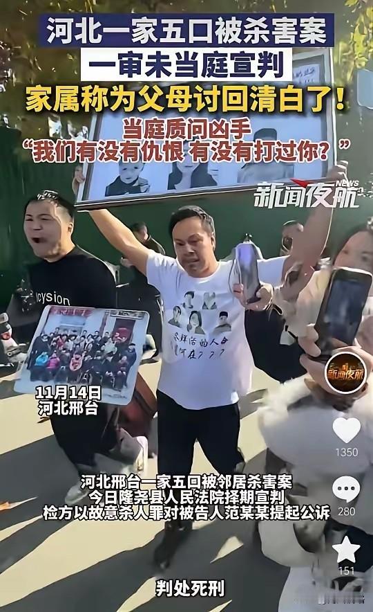 爸爸,我以为找不到你了,开庭前晚上梦见3岁小儿子的遗言,李先生在庭审现场已经满头白发。 河北一家五口被杀案终于正式的开庭了,而受害人的家属李先生在庭审前天晚上梦见自己3岁小儿子。 梦里面小儿子对爸爸说了一句,爸爸,我以为找不到你了。一句梦话,到现在的阴阳相隔,再也无法回答。 3岁的无辜小生命,案发的时候,小儿子正坐在小板凳上吃着东西,对着凶手毫无反抗的能力,可凶手却也不放过。 一个什么都不懂的孩子,结果却成了灭门惨案中最令人心碎的牺牲者。 偏偏凶手却还是村里面的邻居。 根据了解,凶手在村里面的风评极差,连自己的亲兄弟亲姐妹都不想去来往,而且也早就有了矛盾。 就因为一个宅基地,长期积累怨气,结果变成了这样的无法挽回的局面。 李先生也因为过度的悲痛瞬间一夜白头。 失去了至亲,连梦中都很难找到自己孩子的痕迹,到醒来只剩下了一望无际的思念。 有问题可以去协商解决啊,为什么要这样做出这样无法挽回的局面呢? 希望法院依法严惩凶手,来维护社会底线。 面对恶邻,我们是忍让还是反抗?