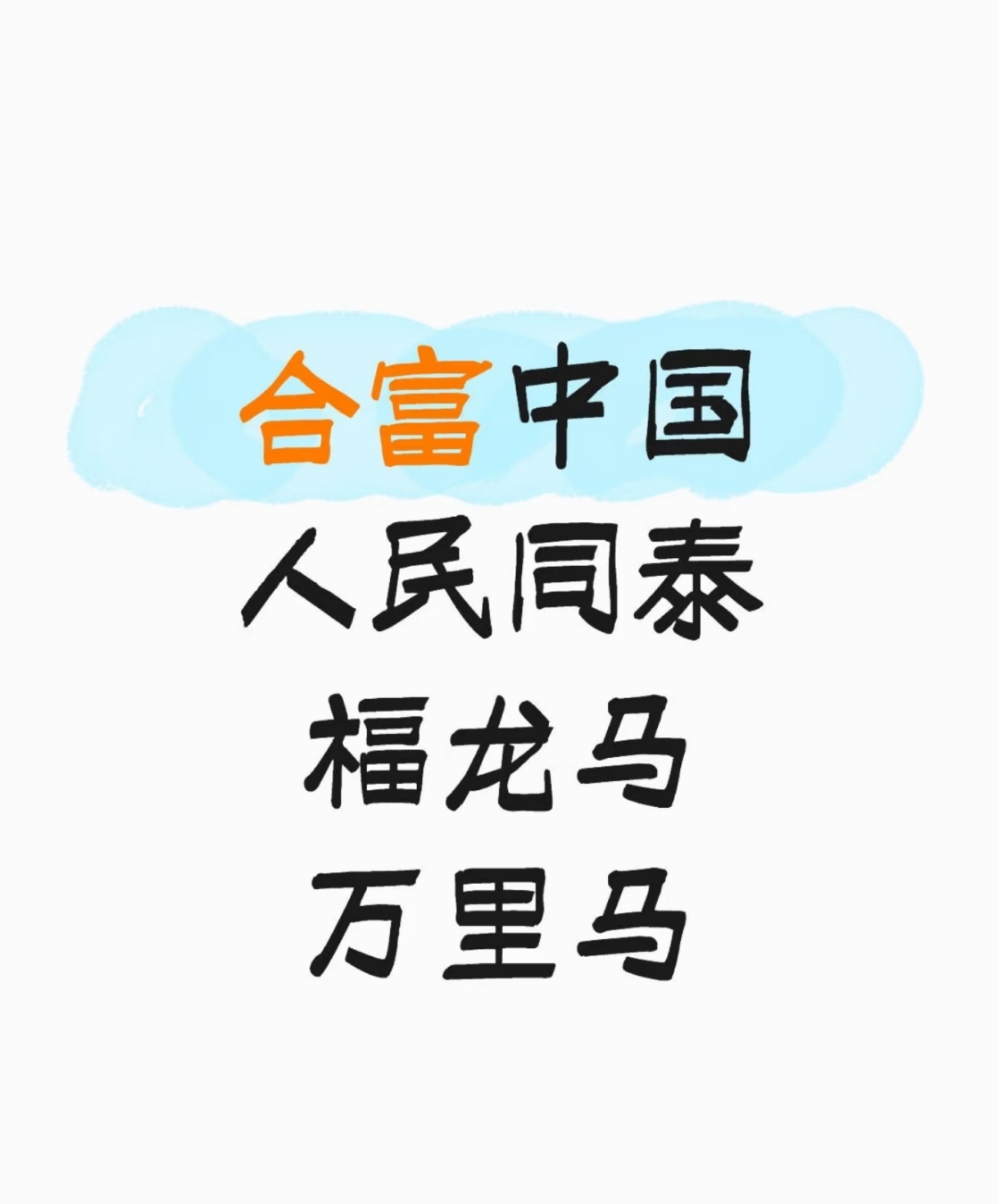 一年一度的炒名字,炒生肖大赛,周四高潮,马犇统计一下最新的相关涨停股:炒名字:合富中国,人民同泰三字头:三湘印象,三木集团,三夫户外,三友化工,三元股份,三江购物九字头:九阳股份,九牧王龙字头:盘龙药业,金龙汽车,龙洲股份马字头:海马汽车,野马电池
