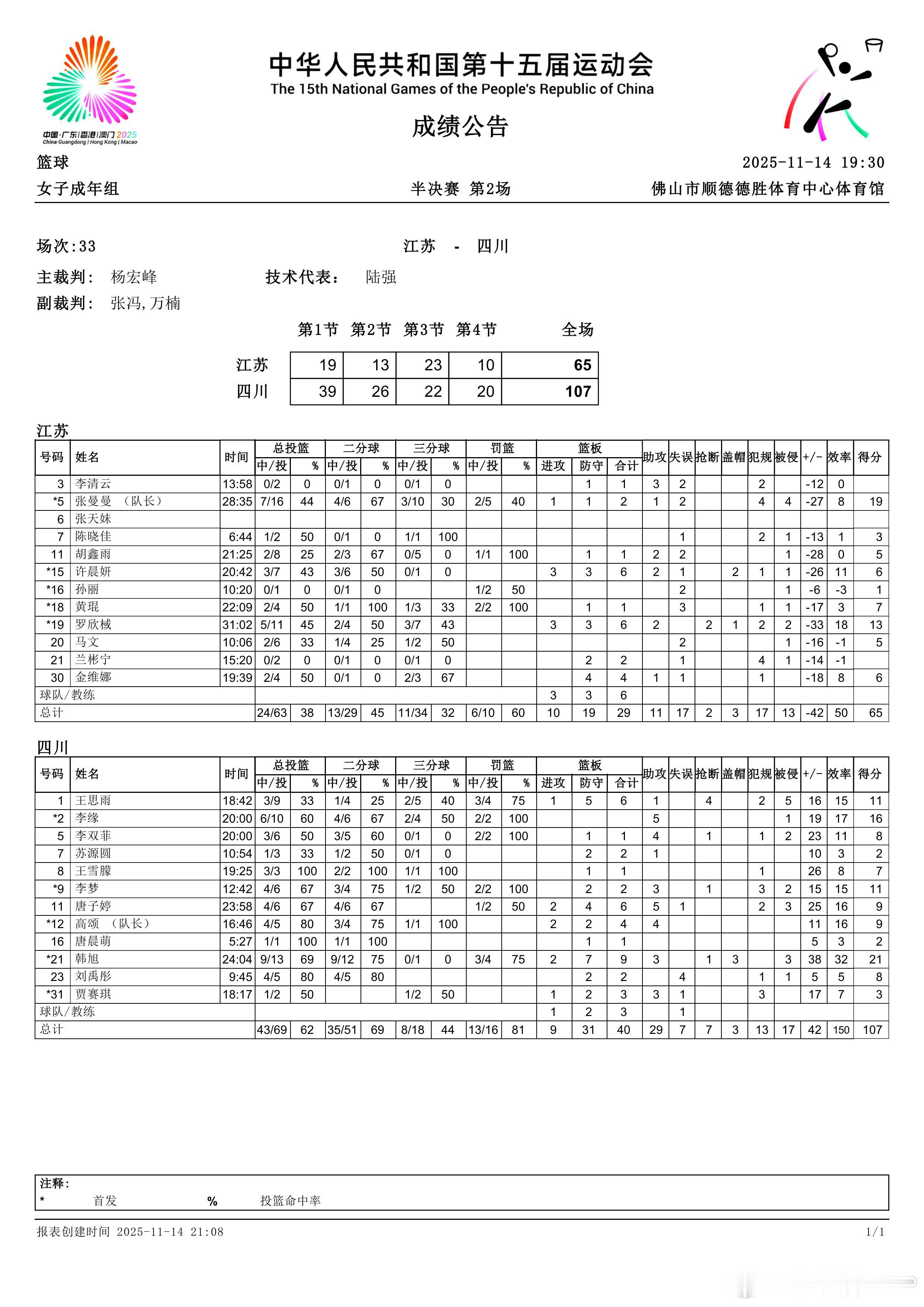 毫无悬念!广东女篮和四川女篮强势会师全运会女篮成年组决赛。广东女篮半决赛108-48血洗辽宁女篮60分,四川女篮也不遑多让,107-65大胜江苏女篮32分。明晚的女篮决赛犹如今年WCBA总决赛的二番战,究竟是广东女篮捍卫主场荣誉, 还是四川女篮完成复仇呢?