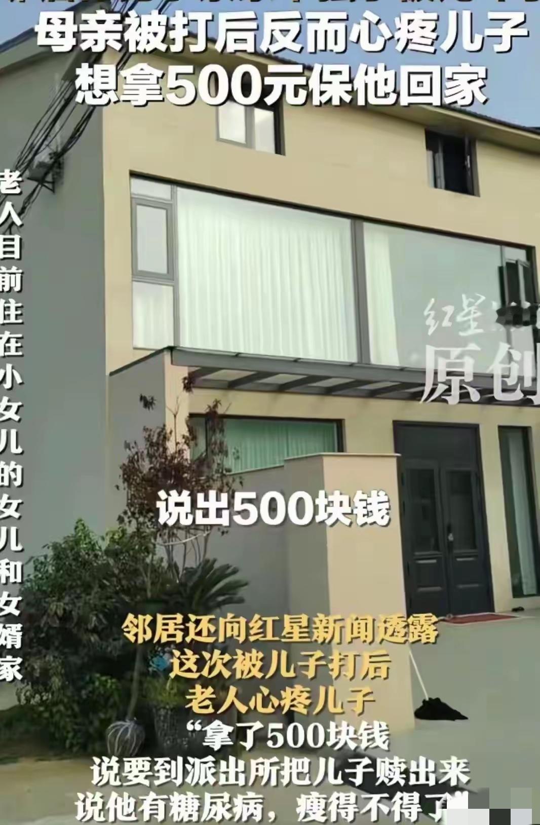 可怜之人必有可恨之处啊! 被儿子殴打的老太太要出500元钱把儿子“赎”回来。 老太太的邻居透露,她虽然犯有痴呆,经常忘事,但是她一直记得儿子有糖尿病要天天吃药。 把儿子“赎”回来这事这几天也一直记着,老太太生了四个女儿后,37岁才生下这么一个宝贝儿子,含在嘴里怕化了,捧在手里怕摔了。 希望这儿子回来以后能痛改前非,好好孝顺老母亲。