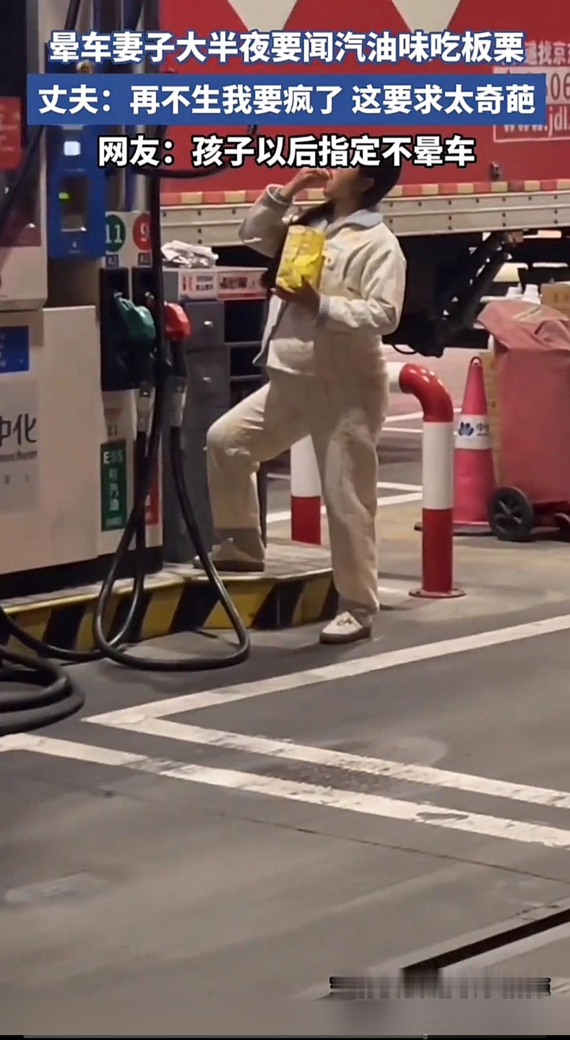 半夜晕车妻子想吃板栗,丈夫崩溃了
