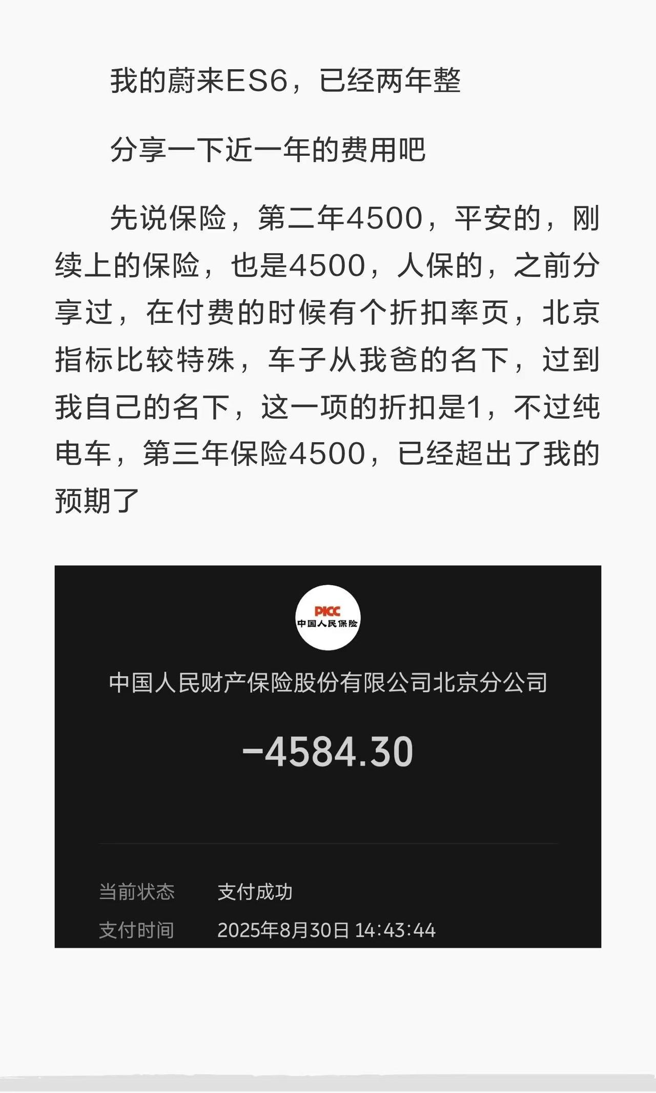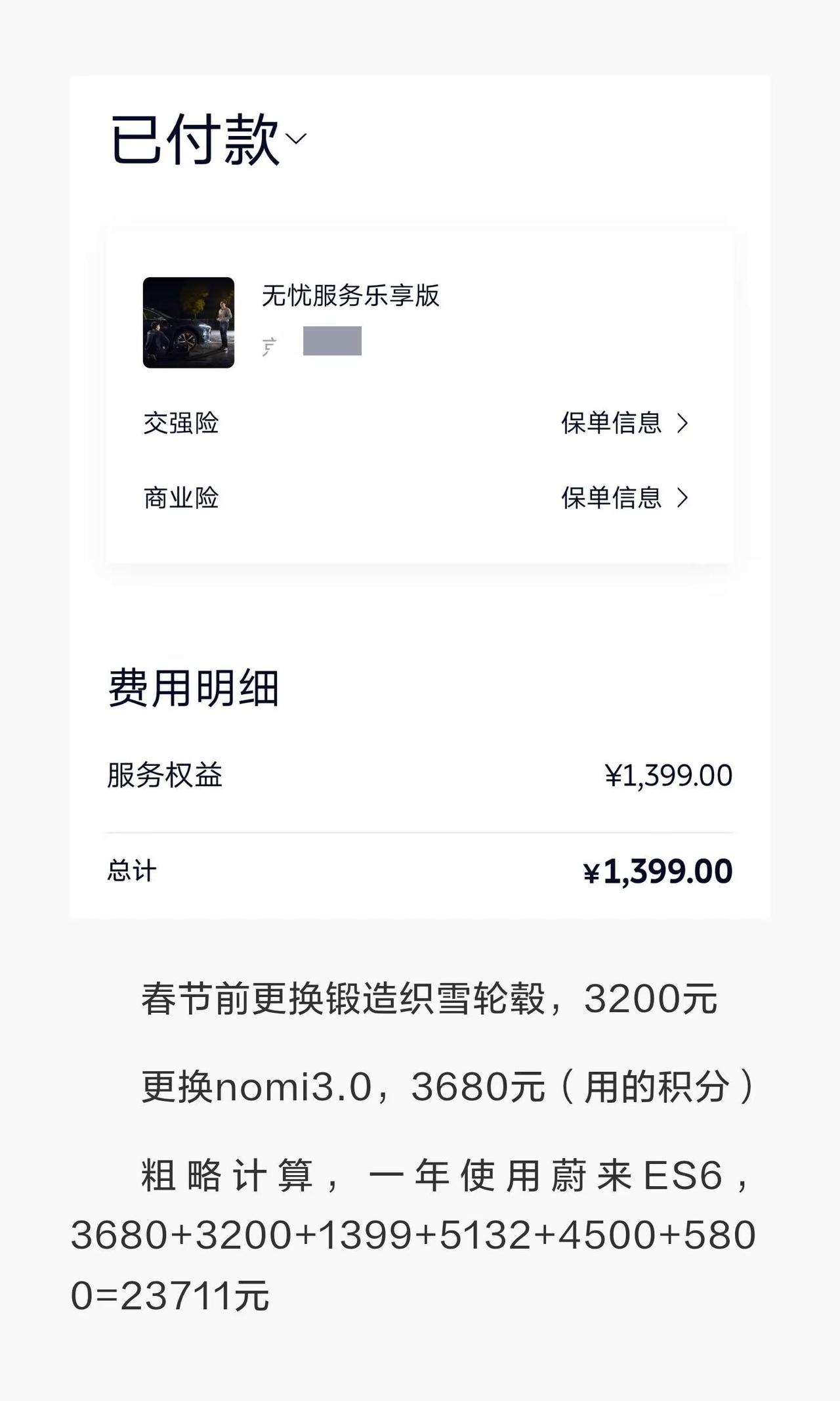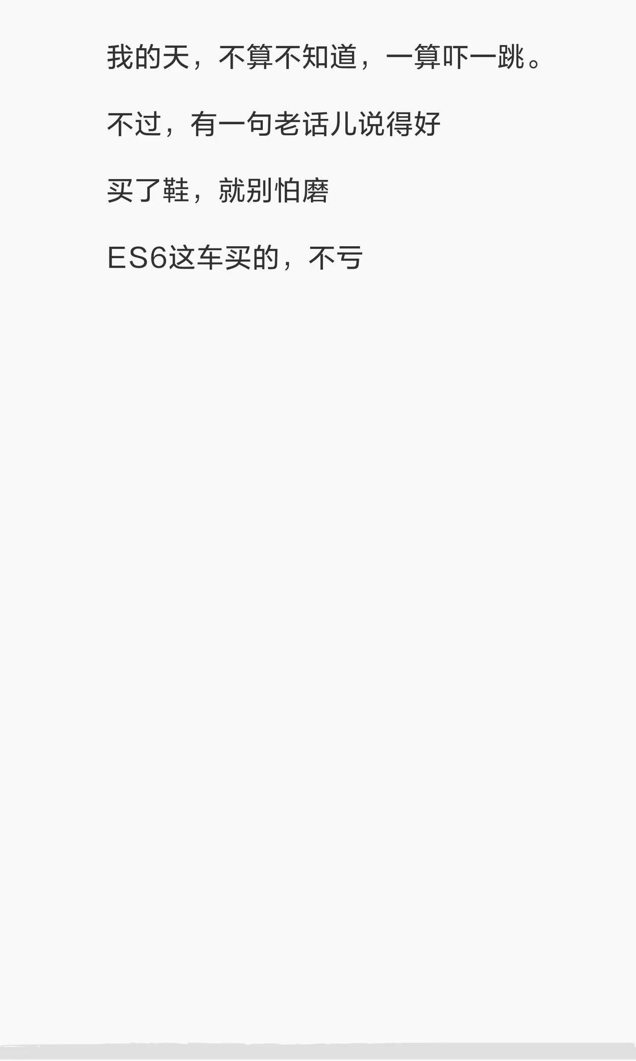 分享一下使用蔚来ES6,一年花费多少钱。es6 蔚来