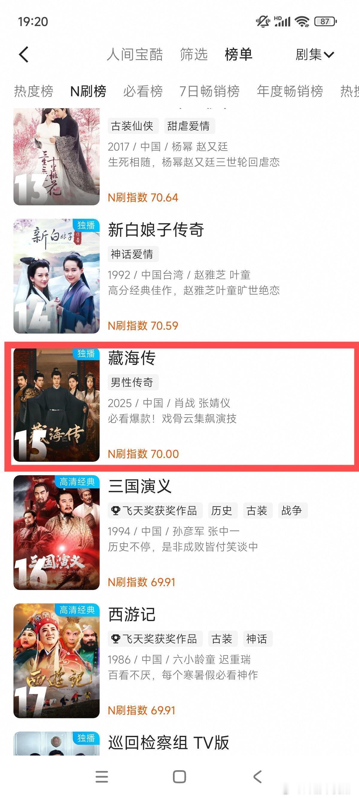 我的天!让我们恭喜肖战的《藏海传》进入优酷的N刷榜!!!!谁懂这个榜单的含金量 全是经典老剧 藏海传就这么水灵灵的闯进去了