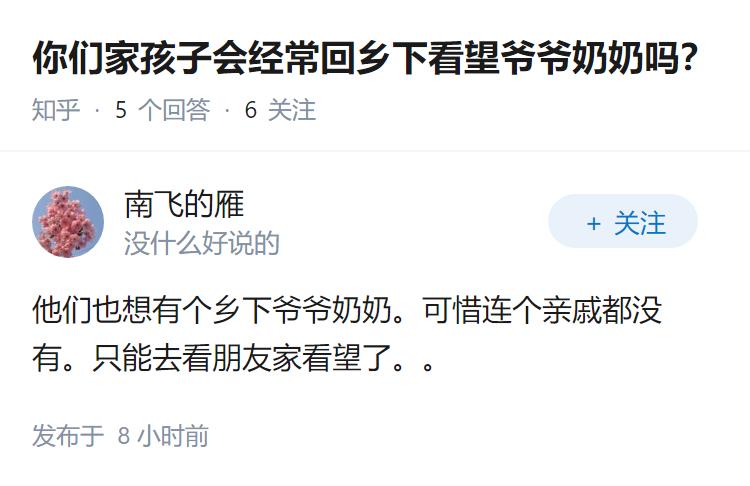 你们家孩子会经常回乡下看望爷爷奶奶吗?