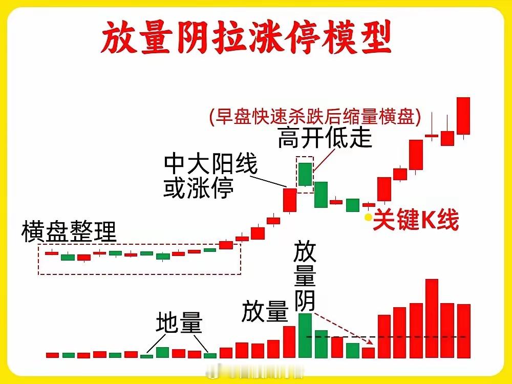 首板次日巨阴别怕!6大核心特征,1分钟分清主力洗盘还是出货做首板的朋友注意了!首板涨停后次日突现巨量大阴线,是不是瞬间慌了——怕主力出货被套山顶,又怕误判洗盘错过拉升?这是短线股民的通病!其实这根巨阴不是洪水猛兽,而是主力常用洗盘手法,抓准以下6大核心特征,就能精准区分真假信号,看完直接能用!1. 巨阴不穿关键支撑:即便盘中波动剧烈,最终未跌破首板启动价或5日均线等关键支撑,说明下方承接力充足,主力意在震仓而非出逃,后续重点观察支撑是否稳固。2. 分时多“假破位”:不会单边直线下跌,常出现短暂破关键价位后快速大单拉回,或下跌中反复脉冲反弹,这是主力故意制造恐慌,逼迫散户交出筹码。3. 量能“温和放量”:成交量虽放大,但未超首板量能3倍以上,且无开盘跌停、长时间封死跌停等极端恐慌抛盘,属于洗盘时的正常筹码交换。4. 板块联动未弱:个股巨阴时,所属核心板块未同步走弱,其他龙头或跟风股仍强势或小幅调整,说明只是个股单独洗盘,后续易重启拉升。5. 次日快速修复:巨阴后第二天,股价低开高走、平开震荡或小幅回调后快速反弹,能收回巨阴实体一半以上,预示恐慌情绪释放完毕,洗盘基本结束。6. 筹码峰未松动:巨阴当天底部获利筹码仍集中,未出现明显上移或分散,这是洗盘核心信号(主力出货会导致筹码快速上移、分散)。短线做首板,最怕把洗盘当出货、把出货当洗盘。掌握这6个特征,就能精准识别主力意图,避免误判踏空或被套。希望对你有帮助,记得点赞转发!