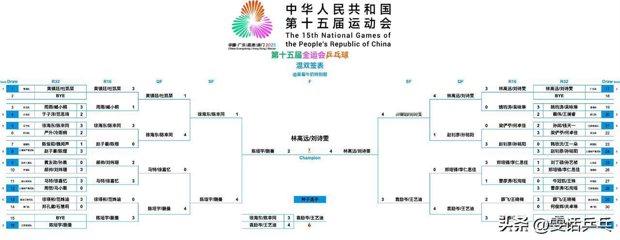 第十五届全国运动会·乒乓球项目 丨混双决赛:11.14 林高远/刘诗雯(广东队)4-2陈垣宇/蒯曼(江苏挺拔队)【13-15,8-11,11-8,11-8,11-8,12-10】 林高远/刘诗雯(广东队)获得第十五届全国运动会乒乓球混双冠军🥇🎉 陈垣宇/蒯曼(江苏挺拔队)获得第十五届全国运动会乒乓球混双亚军🥈