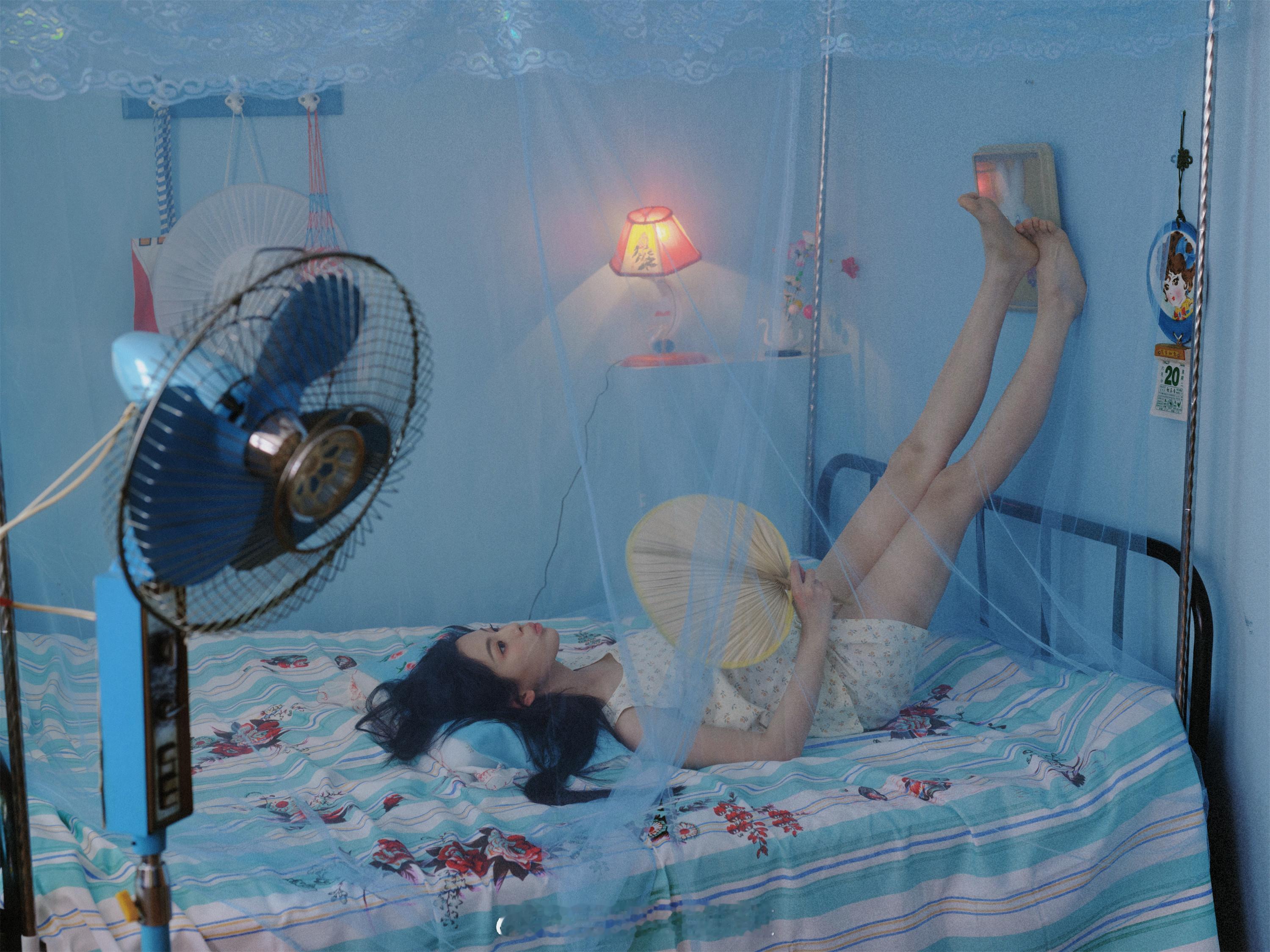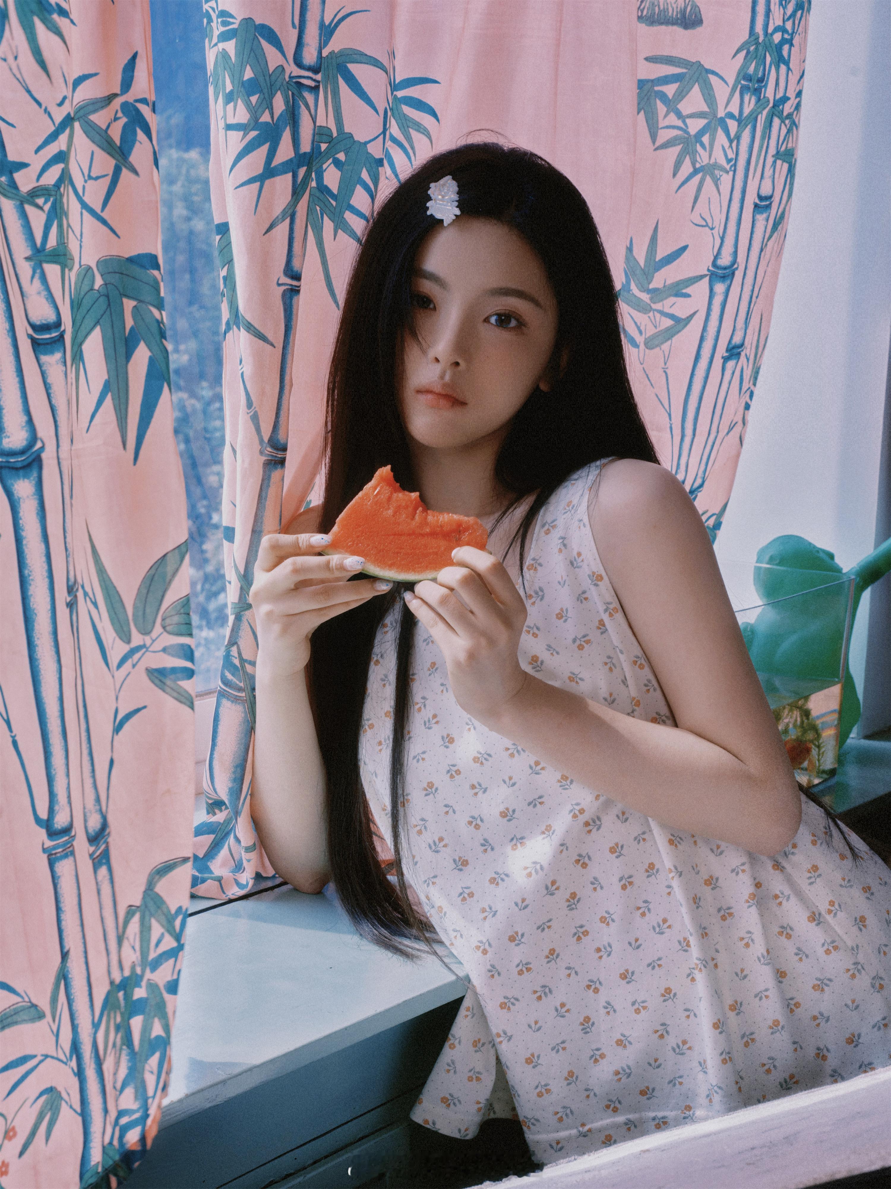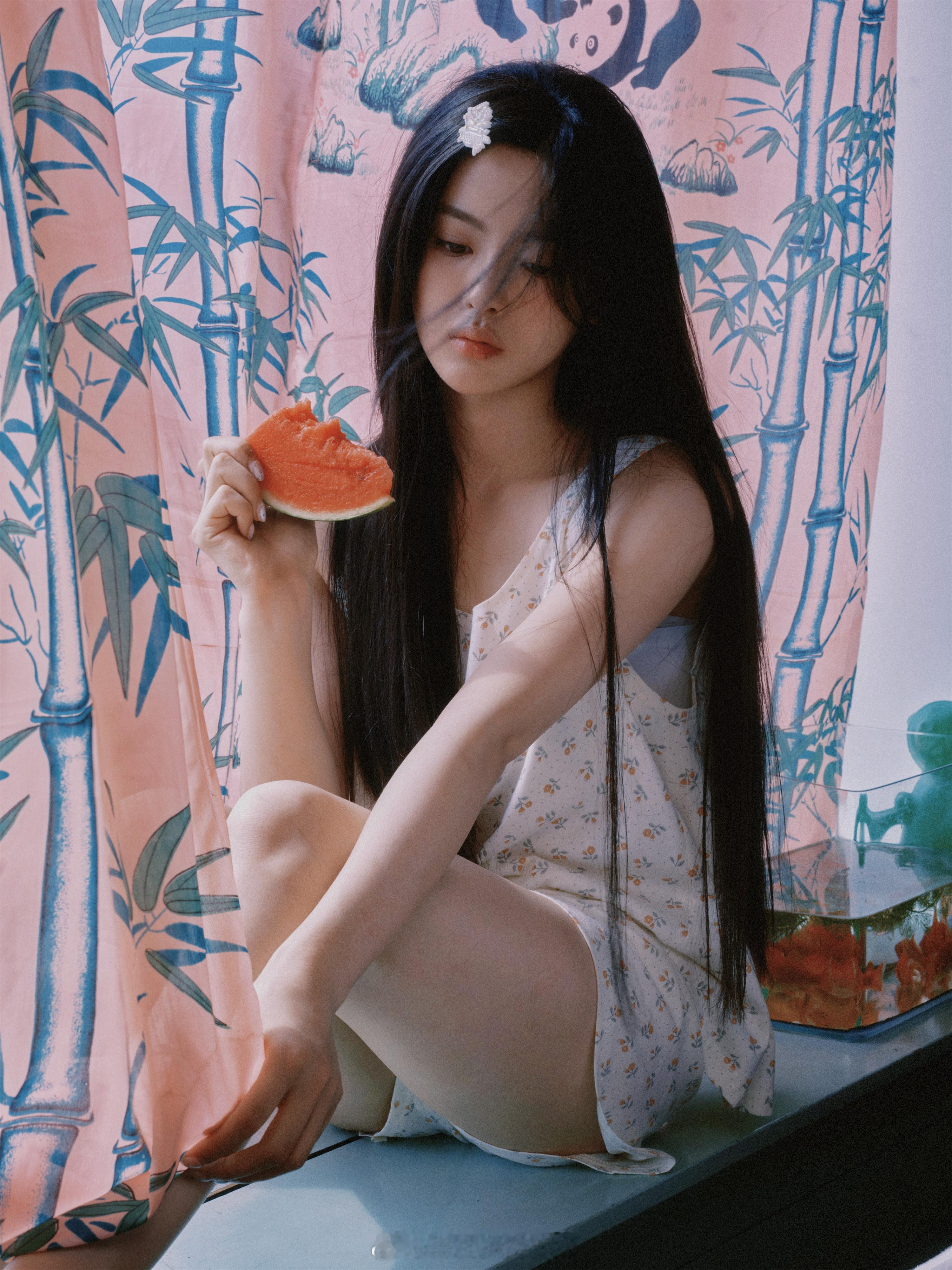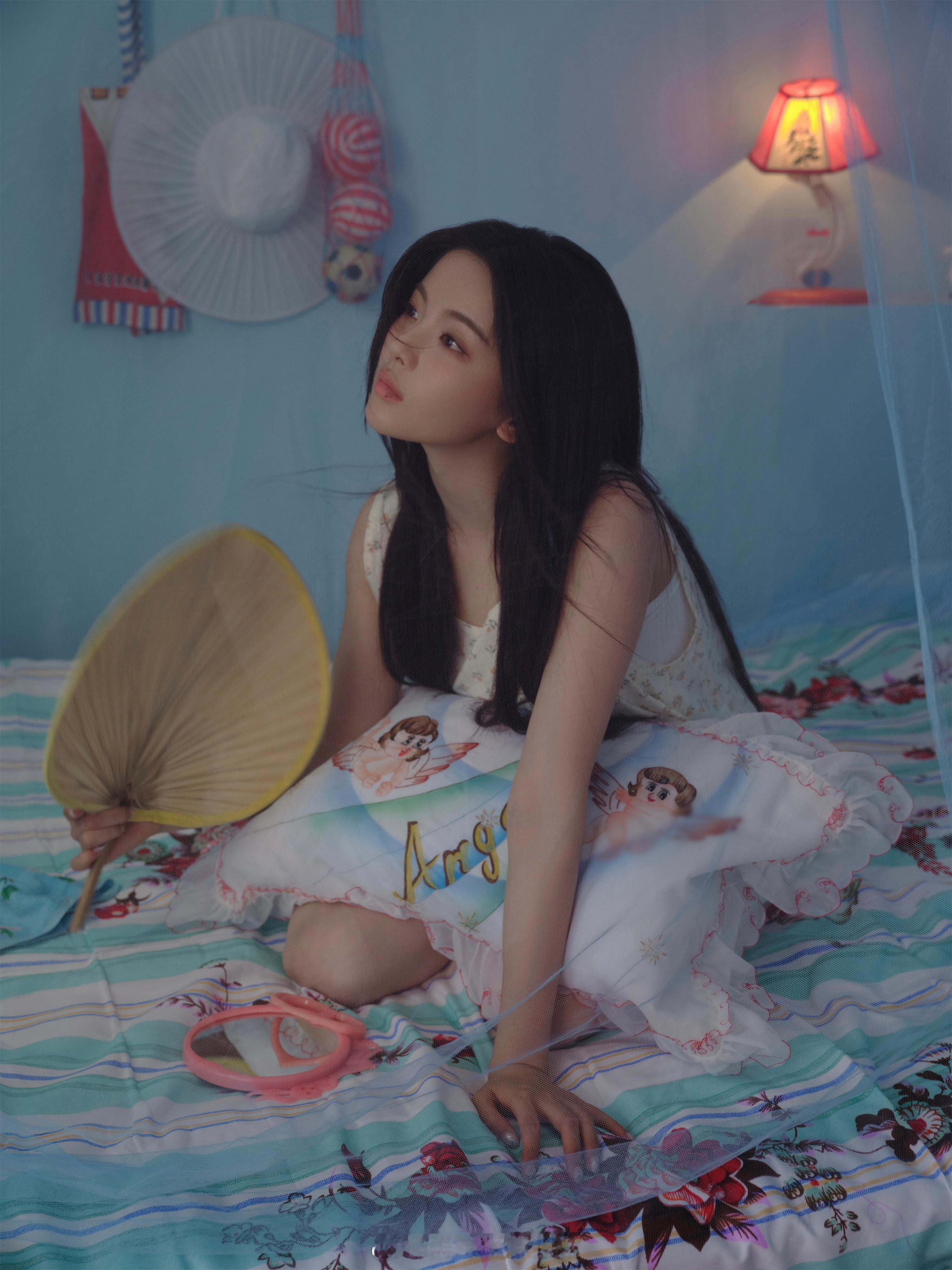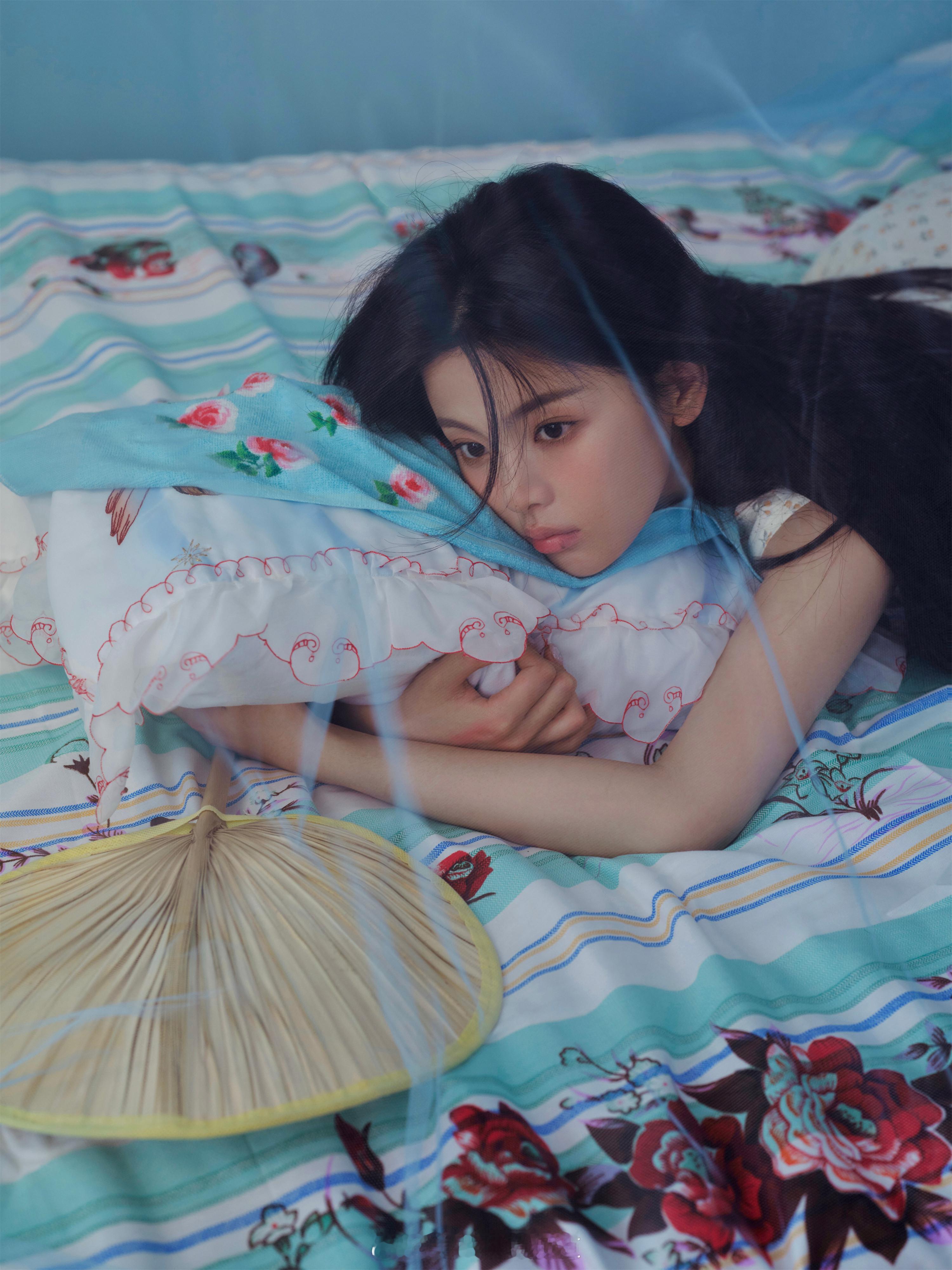 杨超越裸足蜷出软绵的弧度,长腿漫开的线条,比缎裙更勾人眼。