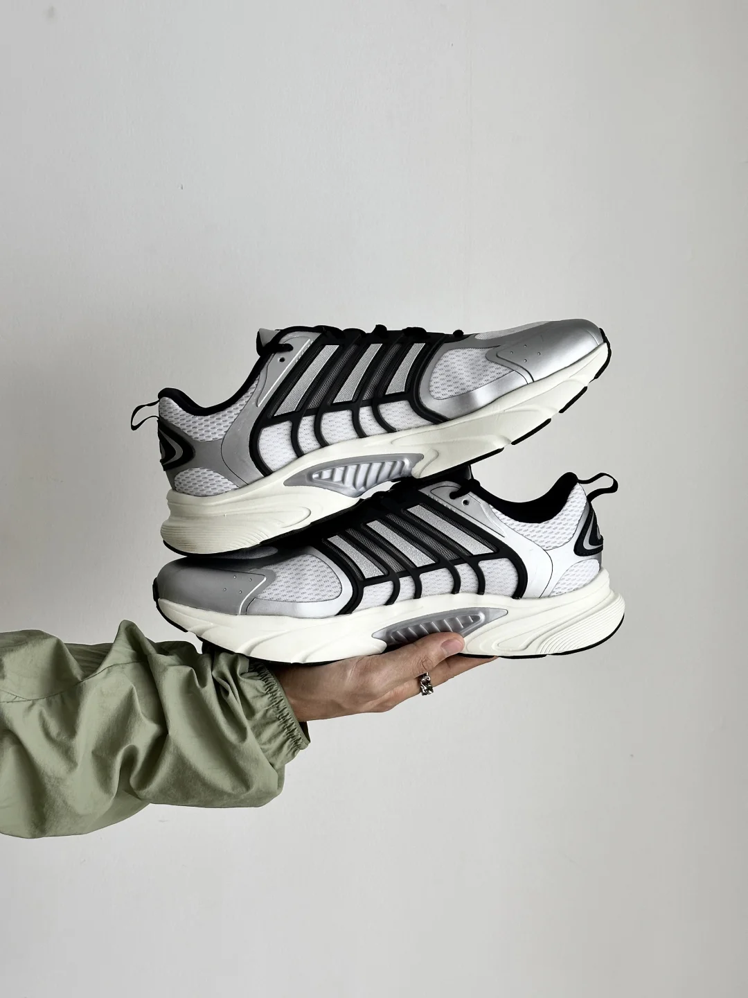 这双adidas Climacool VENTANIA清风鞋 只能说给我焊在脚上 脚感轻盈跟全方位的透气窗设计 夏天再也不怕闷脚了 关键是颜值还在线 我选择的银灰白色也是完全适合日常搭配 搭配豆蔻绿的adidas防晒轻风衣 浅色系或者深色系都很OK 这个夏天的穿搭就看齐阿迪!