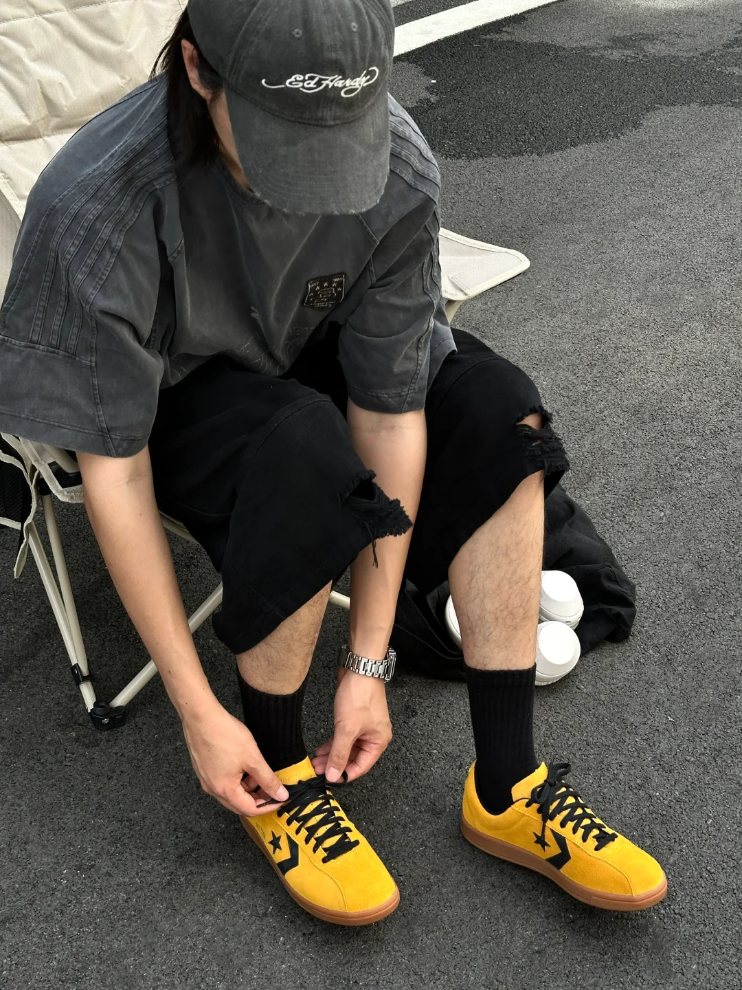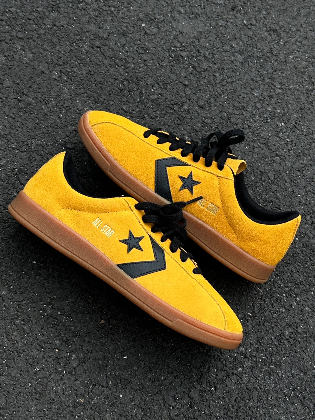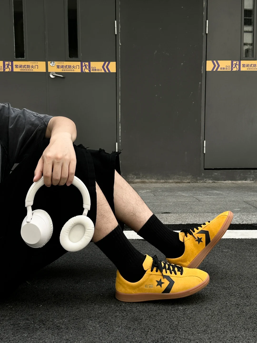 这双「匡威金标德训鞋」 是我近期新入手的一双薄底鞋 整体是很复古的造型 黄色麂皮鞋面搭配黑色logo非常亮眼 侧面有金色ALL STAR,哈哈很“吸金” 亲测鞋头鞋身比一般德训鞋更宽些 不会很秀气,所以适合男生或宽脚星人 搭配美式复古,或中性穿搭 日常或通勤都是不错的选择