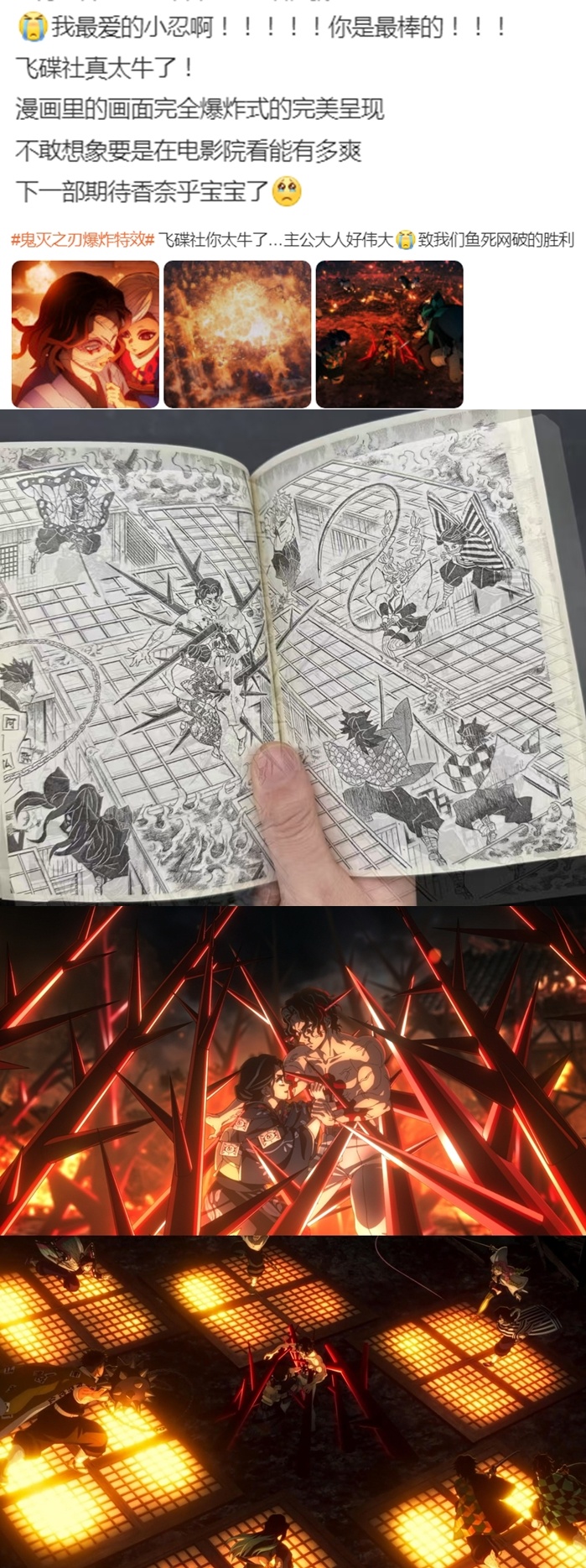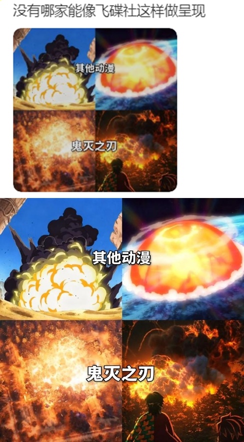 鬼火之刃制作组的厨力有多强?飞碟社员工们曾经聚在一块画了本官方同人画集,这一定是热爱才会做的事。其实在2017年接手动画时,飞碟社运营面临危机,但社长居然下令“把全部预算砸在水之呼吸特效上”。这种破釜沉舟的勇气,大概就是真爱吧。而为了制作这部,从项目启动到完成全程深度参与的“制作部”的所有员工,都参与到了『鬼灭之刃』的制作,最终在预计日期与大家见面。
