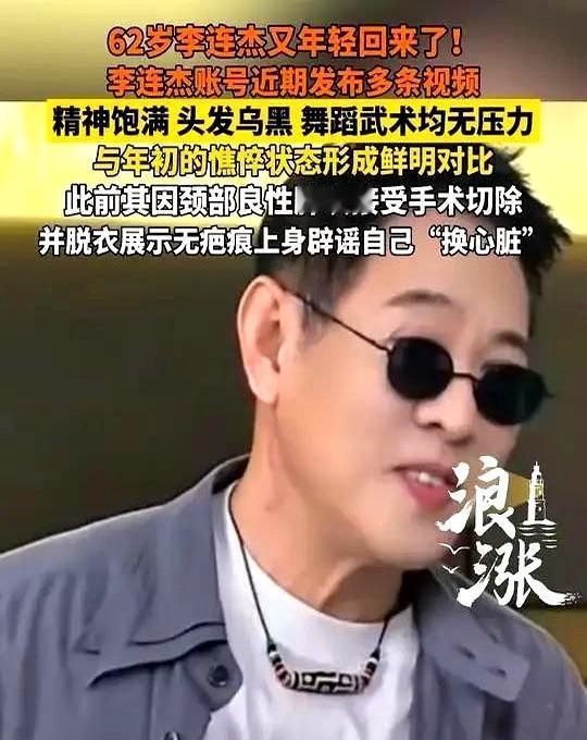 李连杰又火了,不是因为功夫,而是因为脸。 都说他像回到了二十岁,网友却说:别骗人了,你这是花钱买青春吧? 人家自己说,没打针没整容,靠的是太极和糙米。 这事儿真不是开玩笑。 现在有钱人动不动就去硅谷做血浆移植,说是“年轻化”。 结果呢? 肝纤维化、免疫紊乱,身体直接报警。 科学界也坐不住了。 哈佛的研究说,年轻血液里的蛋白确实能让人变年轻,但同时血管钙化风险高了三成。 这哪是返老还童,简直是拿命换青春。 普通人看着这些“神仙操作”,心里其实更慌。 你以为那是科技,其实是资本在卖梦。 医疗资源都集中在少数人手里,普通人连基本健康都难保障,哪来的资格谈“抗衰”? 说白了,现在这年头,年轻不是靠练出来的,是靠钱堆出来的。 你要是真想活得好,不如好好吃饭、好好睡觉、少信那些“神话”。