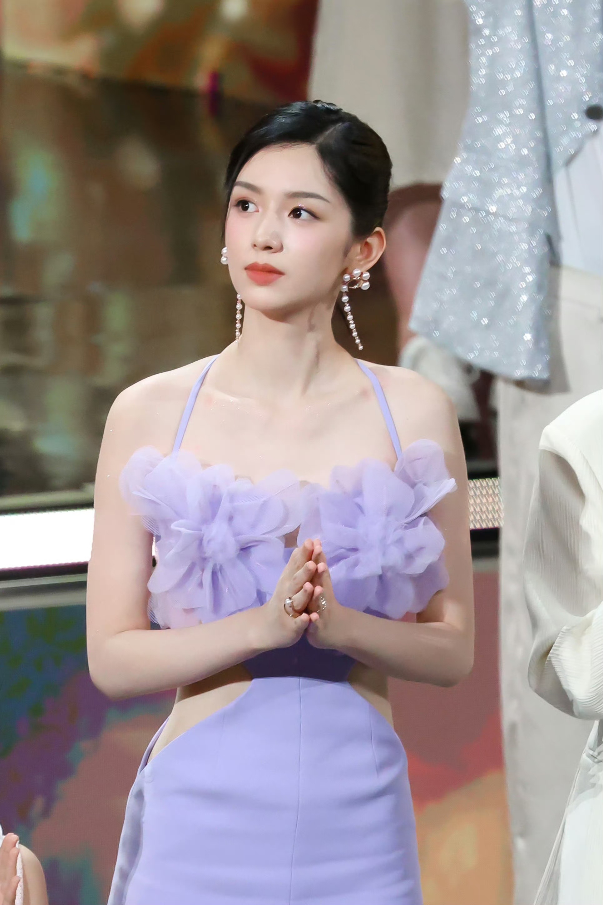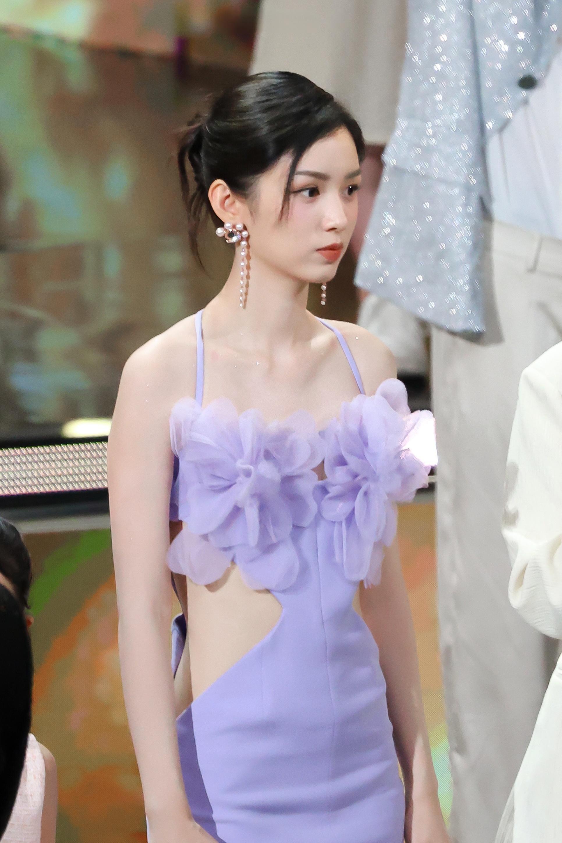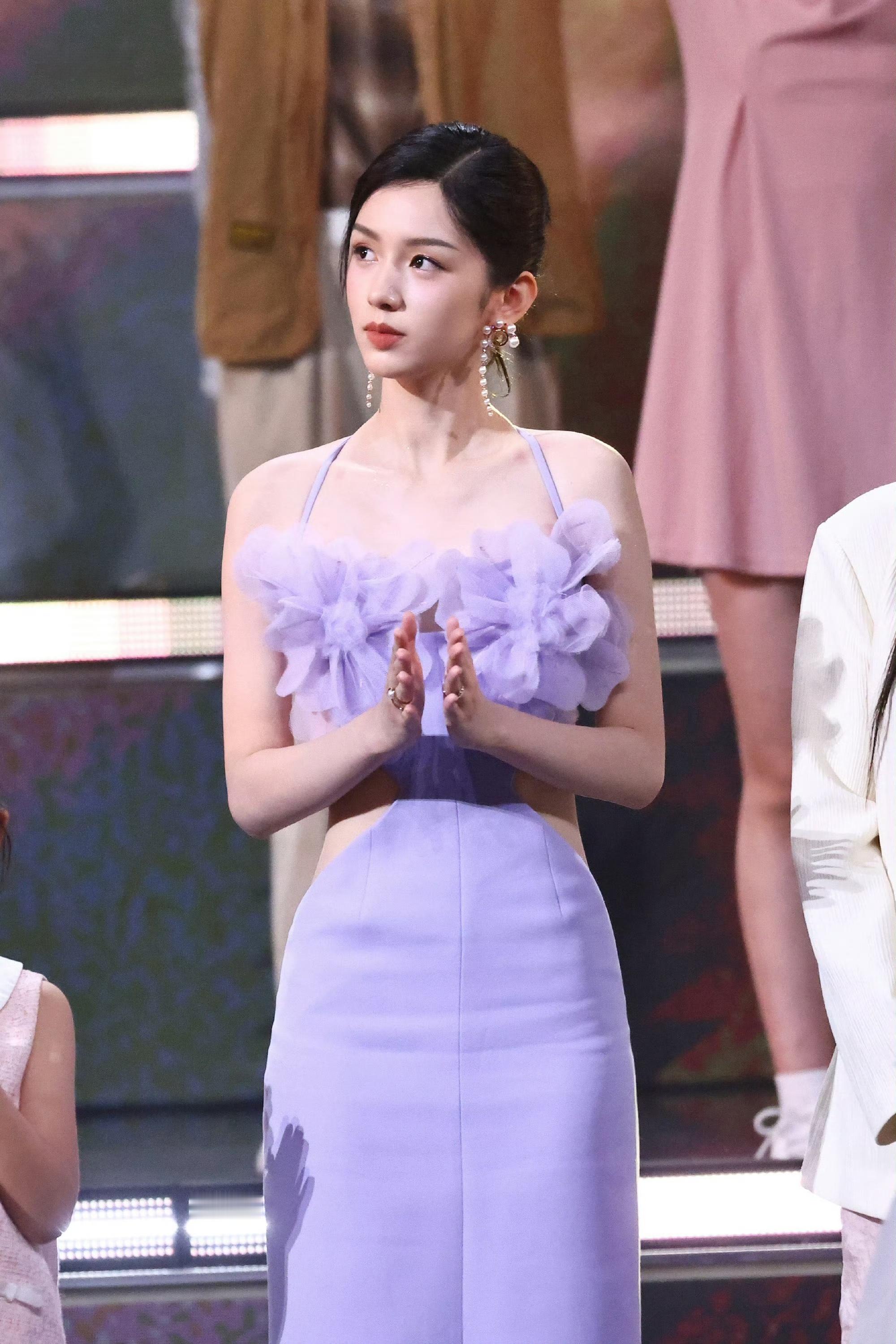 周也|2024抖音电影奇遇夜内场造型礼服|Azzi & Osta 2024春夏系列的淡紫色挂脖裙