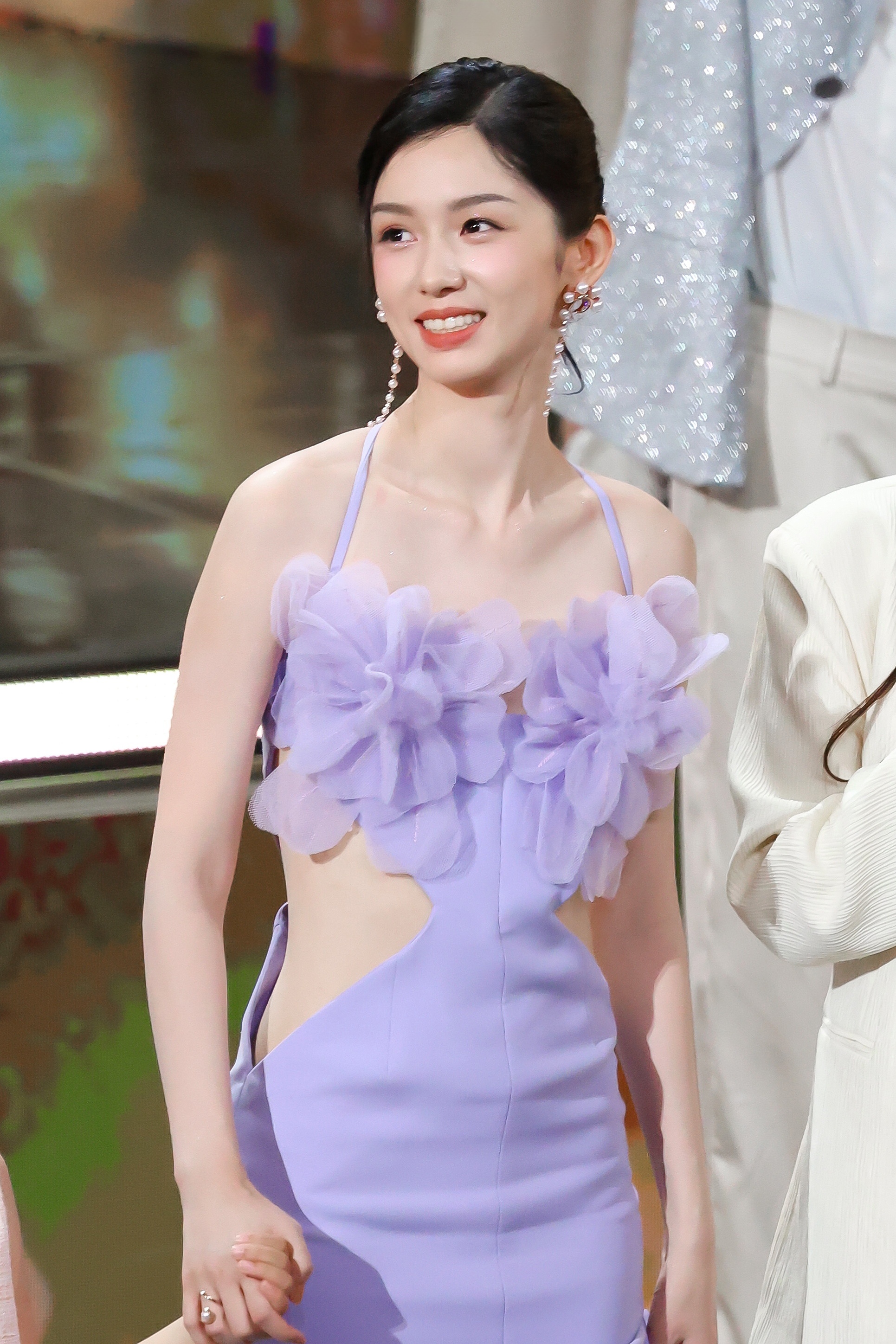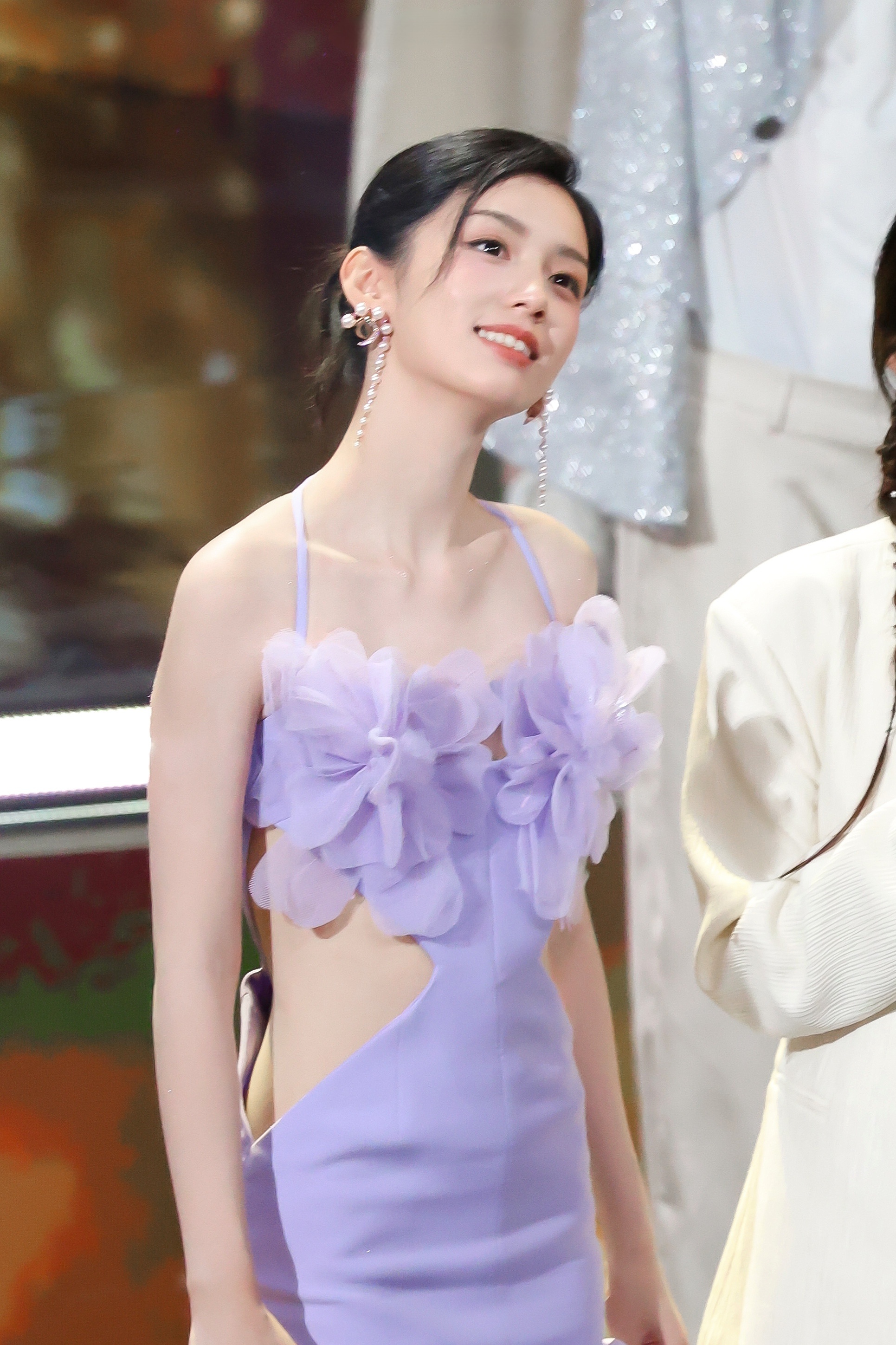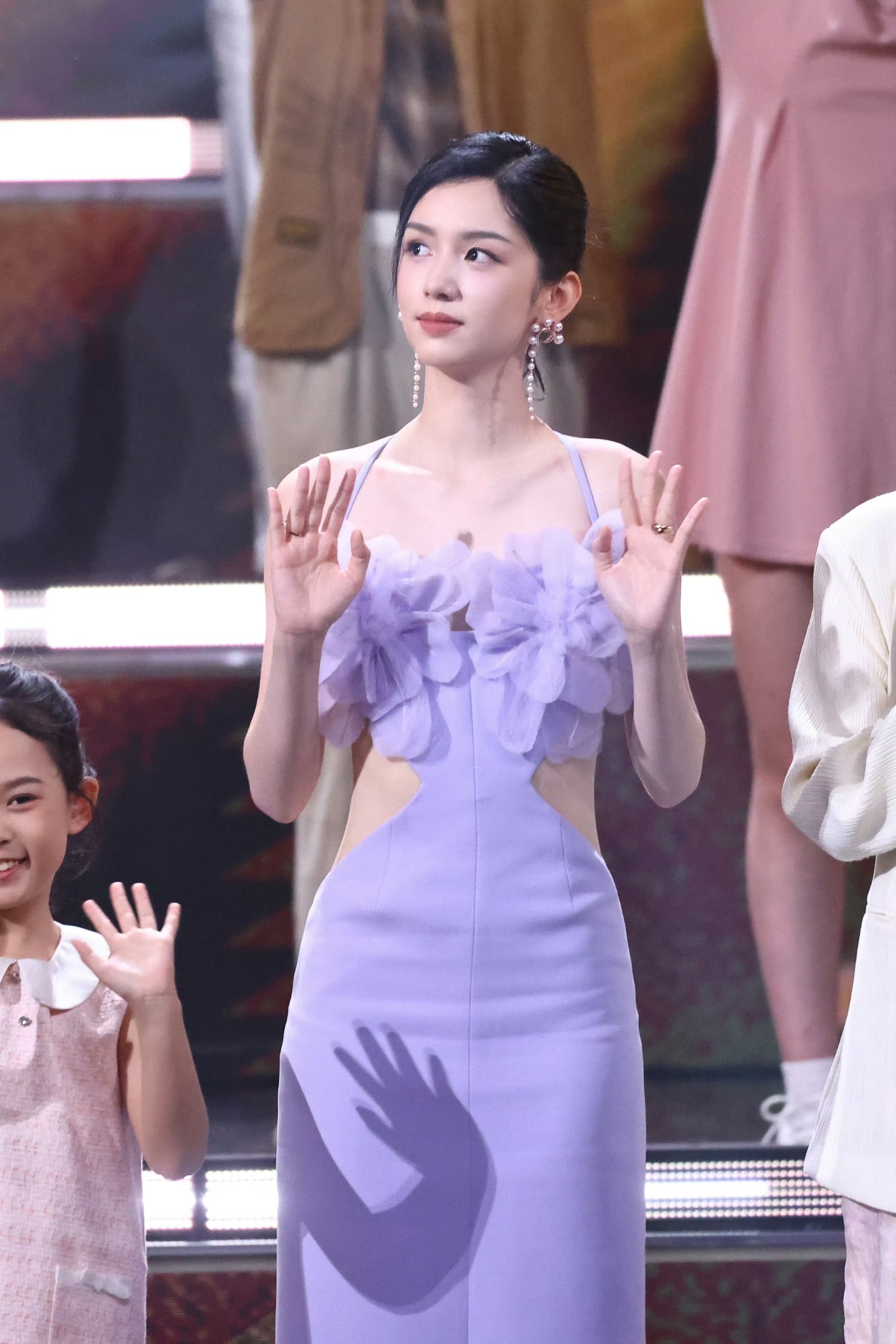 周也|2024抖音电影奇遇夜内场造型礼服|Azzi & Osta 2024春夏系列的淡紫色挂脖裙