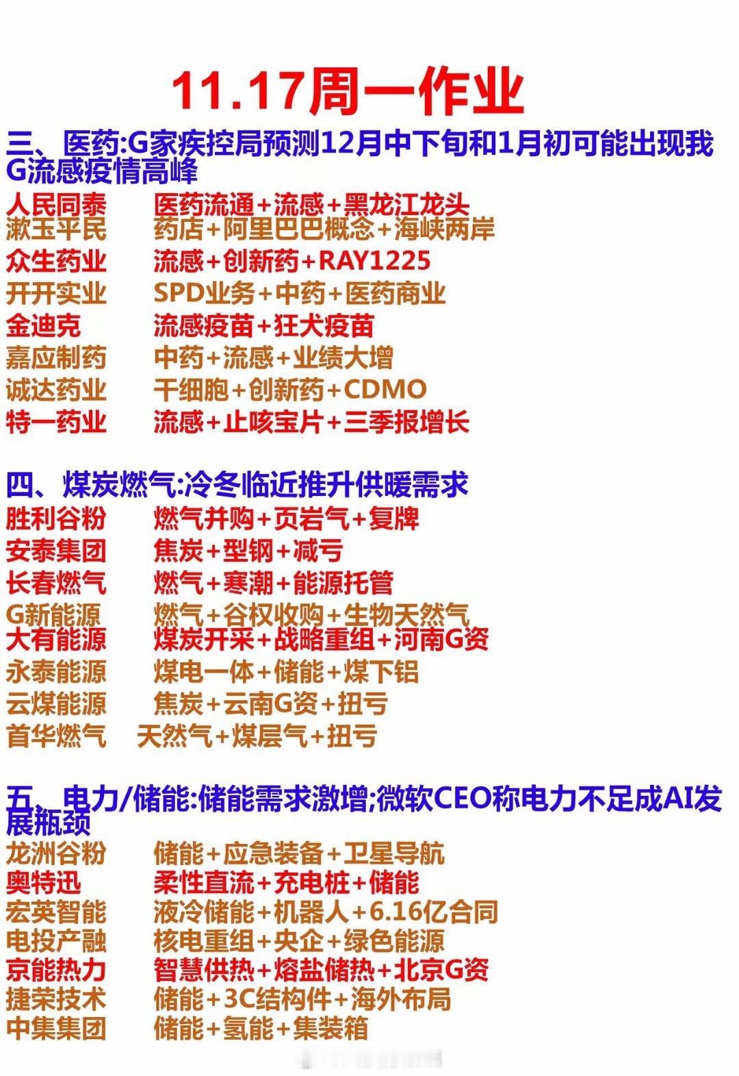 11.17周一热点方向梳理(早知道)一、锂电池二、海峡两岸三、医药四、煤炭燃气五、电力/储能六、大消费七、光伏八、半导体九、其他概念(文章整理于网络,仅学习案例,不做投资依据,股市有风险,入市需谨慎)