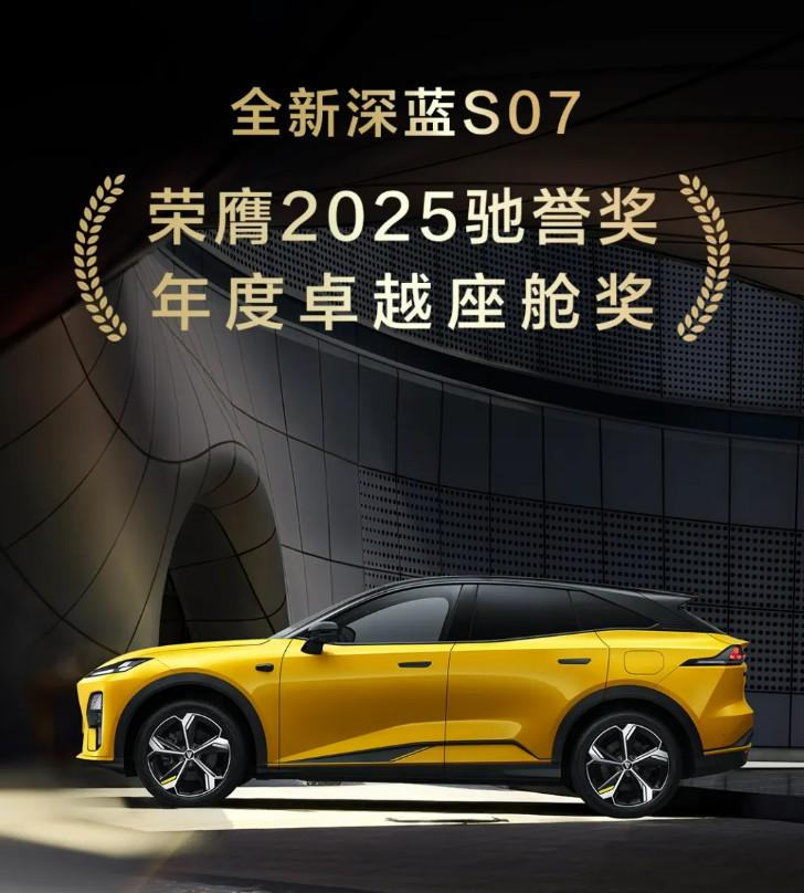 快年底了,奖项也多起来了。 深蓝S07荣膺2025驰誉奖“年度卓越座舱奖”。