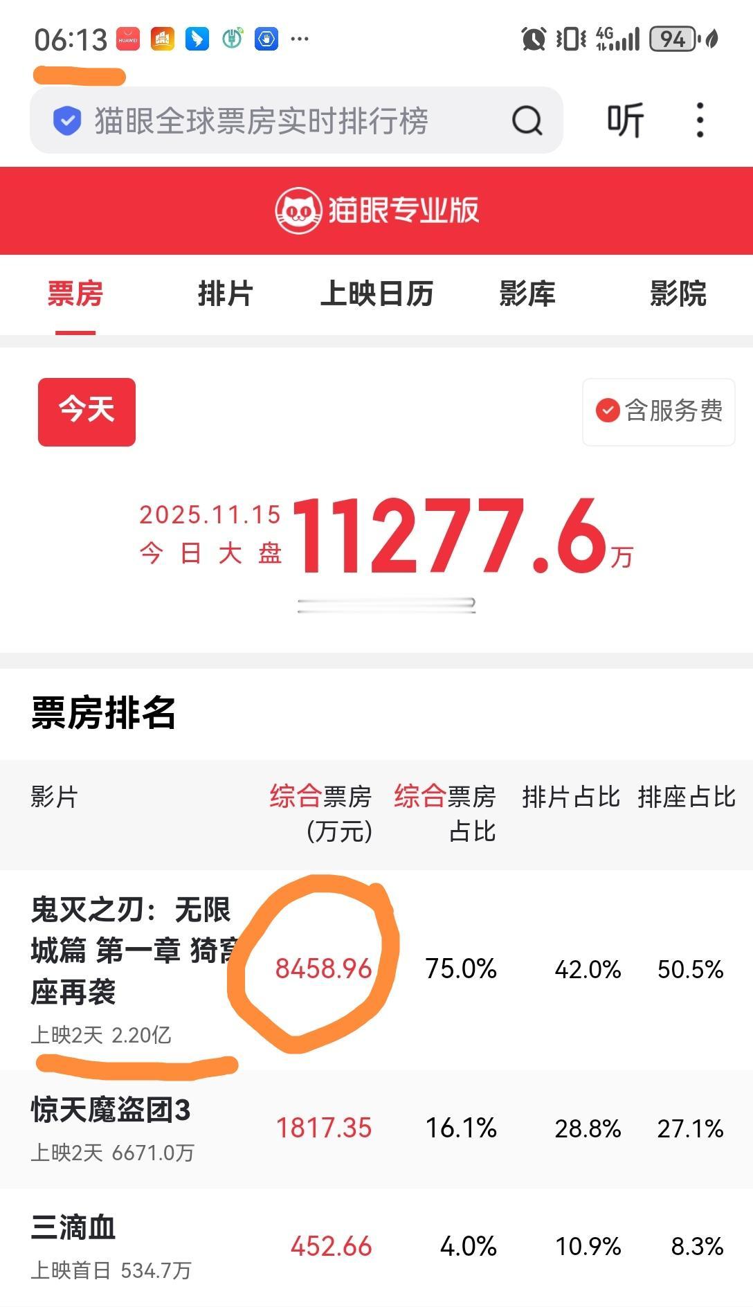 [吃瓜群众]本来11月属于电影排片的“过渡档”,没想到日漫《鬼灭之刃》一上来就两亿票房(含预售),完全压制同期的《魔盗团3》、打崩胡歌的《三滴血》[思考]而且,今天一大早起来当日票房就8000万+了…号称“北京、上海、广州等核心城市零点场上座率飙升至92%”[石化]特别是魔都现场,不但气氛热烈,而是…“半夜瘾大”[what]