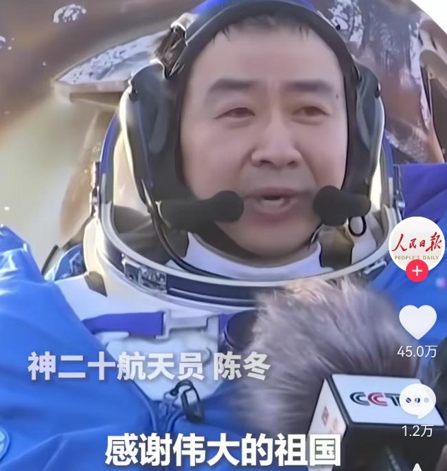 谁都没有想到, 神舟二十号航天员陈冬回到地面第一件事不是紧急与家人取得联系,而是第一时间感谢了我们伟大的祖国。 11月14日,返回舱稳稳降落在东风着陆场,刚走出舱门,陈冬面对镜头坚定的说:“感谢所有为我们安全返回保驾护航的人们,感谢祖国,我们回来了,我为伟大的祖国感到骄傲!” 这声感谢,在网上刷屏的同时,也有人疑惑是不是场面话。但了解陈冬经历的人都知道,这绝不是客套。 从 2016 年神舟十一号的首次飞天,到后来的任务执行,再到这次神舟二十号的超长驻留,三次叩问苍穹的经历,让他比谁都清楚,每一次安全出发、平安归来的背后,站着的是整个国家的力量。 这次神舟二十号乘组的任务,本身就带着 “突破” 的标签。3 名航天员在轨驻留足足 204 天,直接刷新了中国航天员单个乘组在轨驻留的最长纪录。 要知道,在此之前,神舟十七号乘组 183 天的驻留时长已经让人惊叹,而这次直接多了 21 天。 别小看这 21 天,在太空环境里,每多一天都意味着对生命保障、设备稳定、物资补给的极致考验。 航天员在太空的吃喝拉撒、呼吸睡眠,都得靠空间站的再生生保系统。 这次任务中,这套系统的氧气再生率稳定在 98% 以上,水资源闭合循环利用率超过 95%,相当于在太空中搭建了一个 “迷你生态系统”。 不用频繁从地面运送物资,既减轻了发射压力,也让长时间驻留成为可能。 更让人揪心又佩服的是任务中的小插曲 —— 神舟二十号飞船的舷窗出现了裂纹。 消息一出,不少人捏了把汗,但航天团队的反应却冷静得让人安心。这不是一次意外故障,更不是失败,而是一次教科书级别的风险处置。 太空环境复杂,微陨石撞击、温度剧烈变化都可能对舷窗造成影响,早在设计之初,团队就预判到了这种情况,还制定了多套应对方案。 最关键的是,神舟二十一号载人飞船的提前返航,成了这次风险处置的关键一步。 发现舷窗裂纹后,地面指挥中心迅速调整方案,让神舟二十一号把神舟二十号的乘组接了回来。 这种 “太空救援” 的操作,放眼全球都不多见,既体现了中国航天的预案周全,更彰显了技术上的底气。 可能有人会问,飞船为啥不一起回来?其实这里面藏着科学考量。神舟二十号的舷窗裂纹经过评估,属于 “可控风险”,但继续带着乘组飞行会增加不确定性。 而让神舟二十一号提前返航,既能保证航天员安全,又能对有裂纹的飞船进行后续在轨观测和数据收集,为未来的飞船设计积累经验。 相当于既解决了眼前的问题,又为长远发展铺了路。 陈冬的那句 “感谢祖国”,背后是千千万万航天人的付出。从火箭发动机的研发人员,到空间站的设计师;从东风着陆场的搜救队员,到地面指挥中心的调度员;从为航天员准备食物的营养师,到负责医疗保障的医生,每个人都在自己的岗位上默默坚守。 正是这些人的通力协作,才让中国航天一次次创造奇迹。 说到底,航天梦从来不是一个人的梦,而是一个国家的梦。陈冬三次飞天,见证的是中国航天从追赶到并跑、再到部分领跑的全过程。 他的感谢,既是对所有航天人的致敬,也是对祖国强大的由衷自豪。 而神舟二十号的这次任务,不管是 204 天的超长驻留,还是教科书级的风险处置,都在告诉世界:中国航天,不仅飞得高、飞得远,更飞得稳、飞得安全。