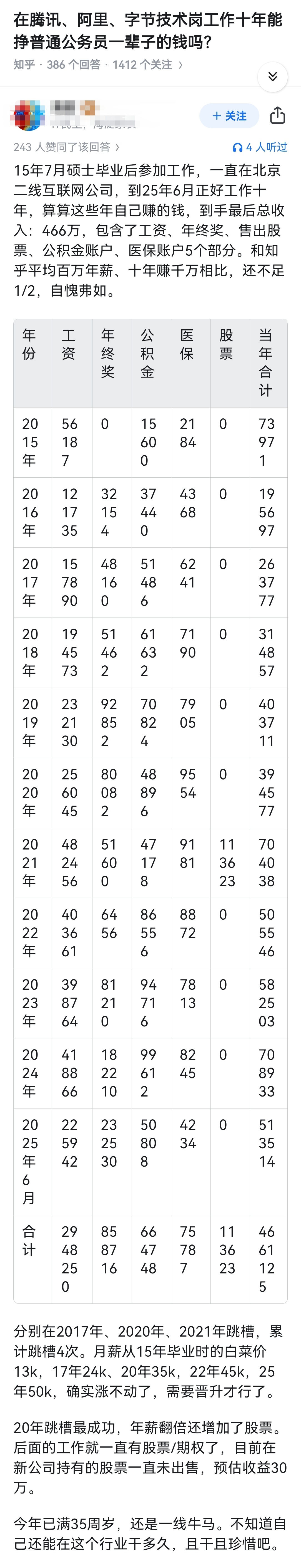 在腾讯、阿里、字节技术岗工作十年能挣普通公务员一辈子的钱吗?