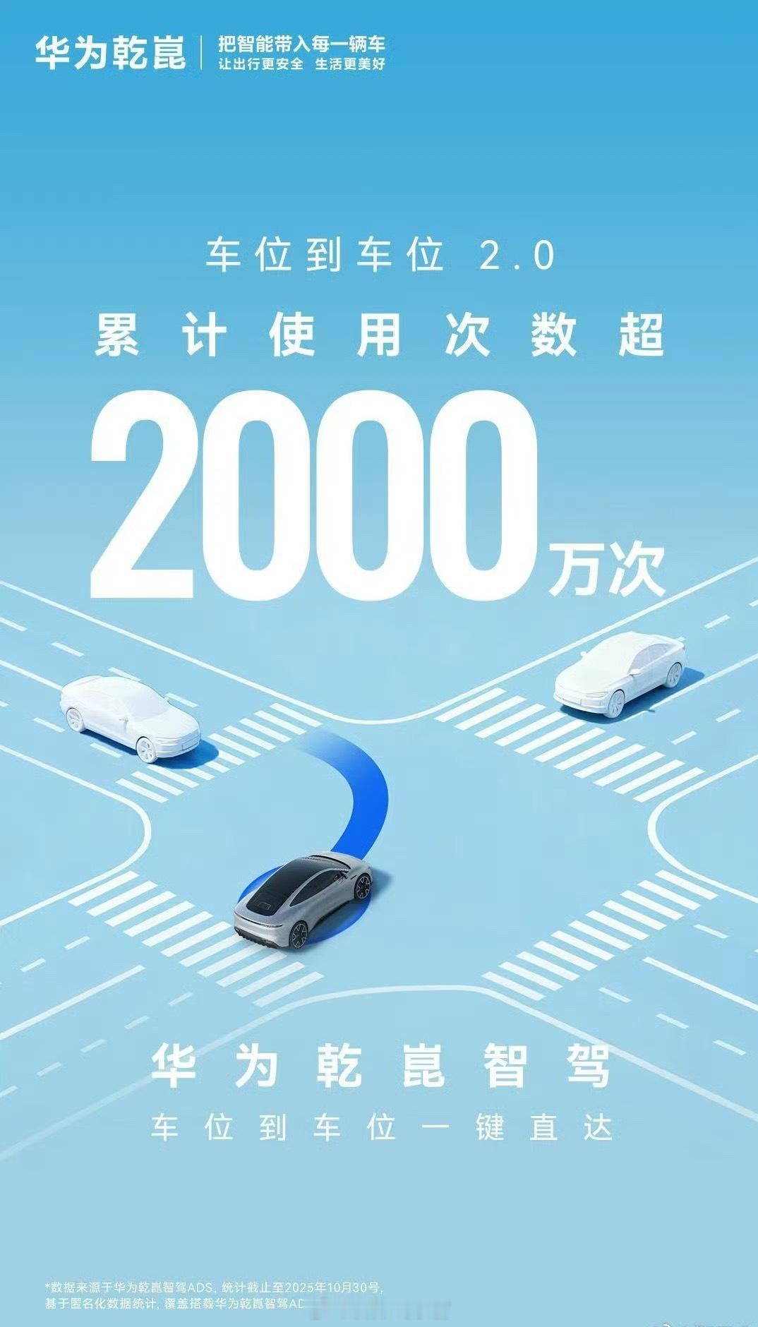 华为乾崑智驾的车位到车位功能使用已超2,000万次。