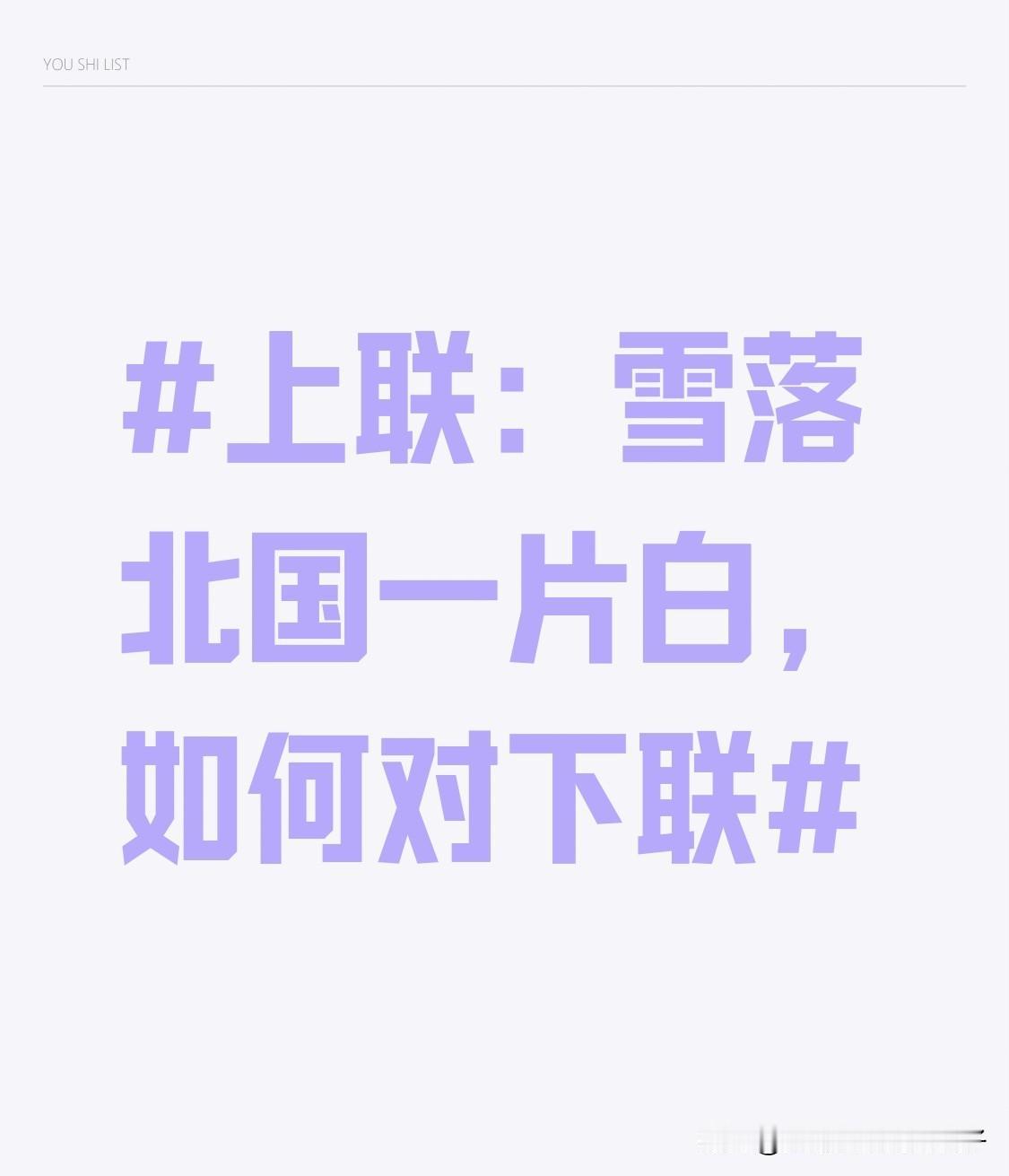 看到“雪落北国一片白”这个上联,瞬间就有画面感了,北方的雪一下,那真是银装素裹,白茫茫一片。我觉得对“日照南国大地红”挺不错。雪落对应日照,一个是寒冷的雪,一个是温暖的阳光;北国对南国,地域上一北一南;一片白对大地红,白色是雪的颜色,红色可以想象成南方被阳光照耀后生机勃勃、热烈的景象,对仗工整,还描绘出了南北不同的胜景。大家觉得我这个下联咋样?