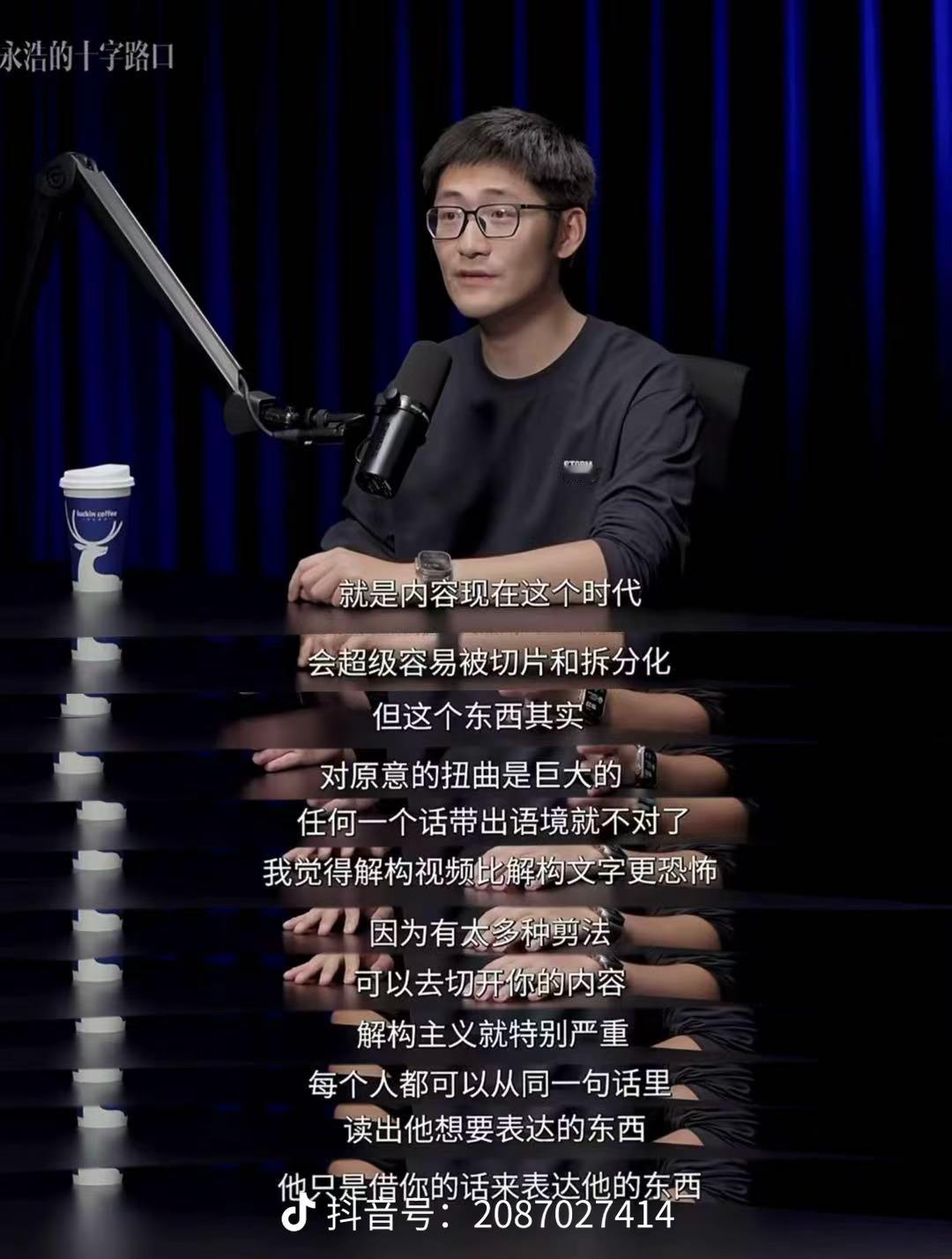那倒是确实,这场访谈一个多小时我全看完了,其中不乏有很多好的思想值得我们去学习,我只是想表达不管对待什么事情我们都得辩证地去看待,没有否定的意思 是这样的,很多博主做出来的很多很有意思的内容也是因为这样子,所以很多人都不愿意去做了,所以慢慢的创新越来越少,内容越来越统一化