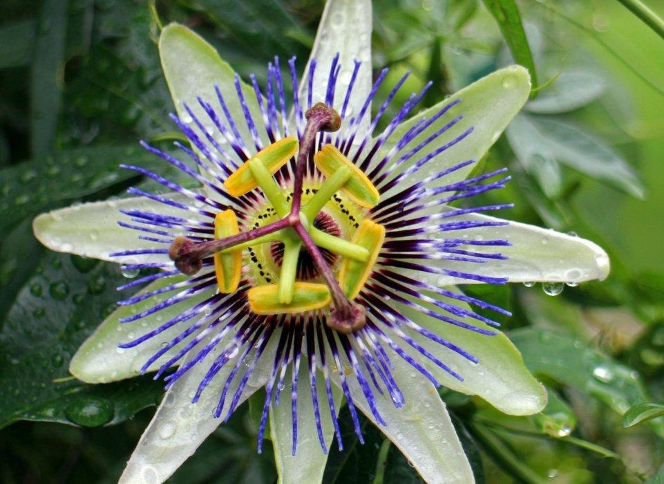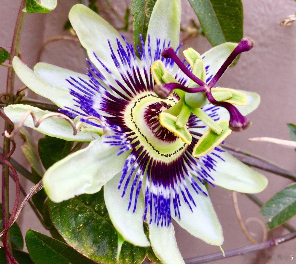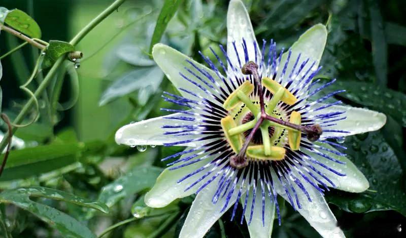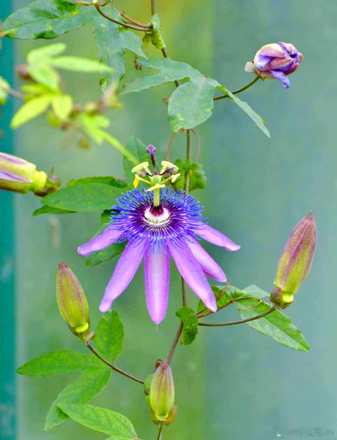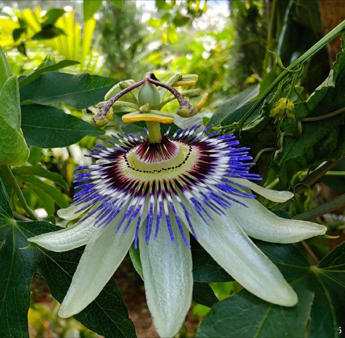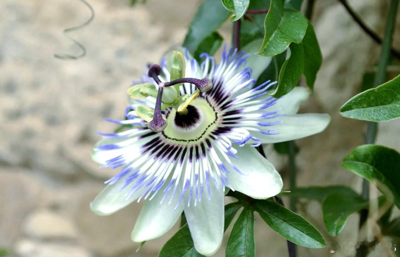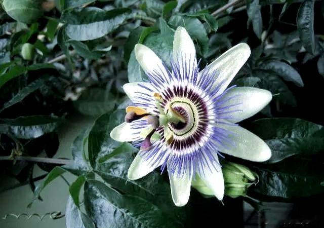 西番莲花,又称百香果花,是西番莲科西番莲属植物的花朵。其花形奇特,色彩丰富,通常有白色、紫色、红色等多种颜色。一、形态特征 - 茎与叶:茎呈圆柱形,微有棱角,无毛且略被白粉。叶为纸质,长5-7厘米,宽6-8厘米,基部近心形,掌状3-7深裂,裂片先端尖或钝,全缘,两面无毛。叶柄长2-3厘米,中部散生2-6个腺体,托叶肾形,长达1.2厘米,抱茎,疏具波状齿。- 花朵:聚伞花序通常仅存1花,与卷须对生,花大,直径6-10厘米,淡绿色。花梗长3-4厘米,苞片宽卵形,全缘。萼片5枚,长圆状披针形,外面顶端具1角状附属器。花瓣5枚,与萼片近等长。外副花冠裂片3轮,丝状,外轮和中轮长1-1.5厘米,顶端天蓝色,中部白色,下部紫红色;内轮裂片长1-2毫米,顶端具紫红色头状体。内副花冠流苏状,裂片紫红色。雌雄蕊柄长0.8-1厘米,雄蕊5枚,花柱3枚,柱头肾形。二、生长习性- 原产地与分布:原产于南美洲,热带、亚热带地区常见栽培,在中国,广西、江西、四川、云南等地均有种植。- 环境要求:西番莲花喜光,喜温暖至高温湿润的气候,不耐寒,适宜生长在土壤疏松肥沃、有机质丰富、水分充足且排水良好的环境中。三、花期与果期 - 花期:通常在5-7月,单朵花开放时间较短,一般仅为一天,通常在太阳升起时绽放。- 果期:果期为7-9月,果实为浆果,卵球形或近球形,成熟时呈橙色或黄色,直径4-5厘米,内部含有多数倒心形种子。四、主要价值- 观赏价值:西番莲花形奇特,色彩丰富,副花冠的丝状裂片如流苏般排列,具有极高的观赏价值,常用于园林景观设计和垂直绿化,也可作为切花材料。- 食用价值 :其果实百香果是举世闻名的香料水果,含有超过132种以上的芳香物质,可加工成果汁、果露、果酱等产品,具有美容养颜、清暑开胃等功效。- 药用价值 :西番莲花全草可入药,具有祛风消热的功效,可用于治疗风热头昏等症状。五、文化意义在西方文化中,西番莲花被称为“受难花”。传教士发现其花蕊结构类似耶稣被钉在十字架上的场景,因此赋予了它这一宗教寓意,其十枚花瓣被认为象征着十位门徒,三层花蕊象征着三根钉子,卷须则象征着鞭子。而在古印加,西番莲花被奉为太阳神的冠冕织进圣物,有着崇高的地位。六、繁殖方式 - 分根繁殖:最为常用,分割时必须带有部分根颈,否则不能萌发新株。常采用预先埋根法进行催芽,待根颈上的不定芽萌发后再分割栽植。- 扦插繁殖:是主要繁殖方法,一般于早春进行,夏秋亦可,以3-4月在温室或温床内扦插成活率最高。- 种子繁殖:仅限于花坛品种和育种时应用。夏季多因湿热而结实不良,故种子多采自秋凉后成熟者,播种后1-2年开花。