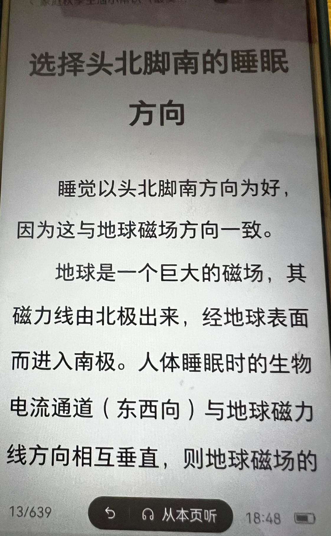 有书里面说睡觉应该头北脚南,这样和地球的磁场比较契合,对身体健康比较好! 也有人说睡觉应该东西方向,各有各的说法和解释!
