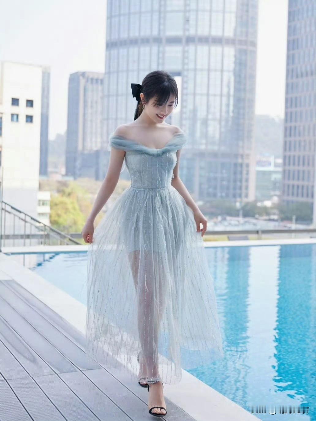 优雅漫步在城市天际线,轻纱裙摆随风飘逸。
