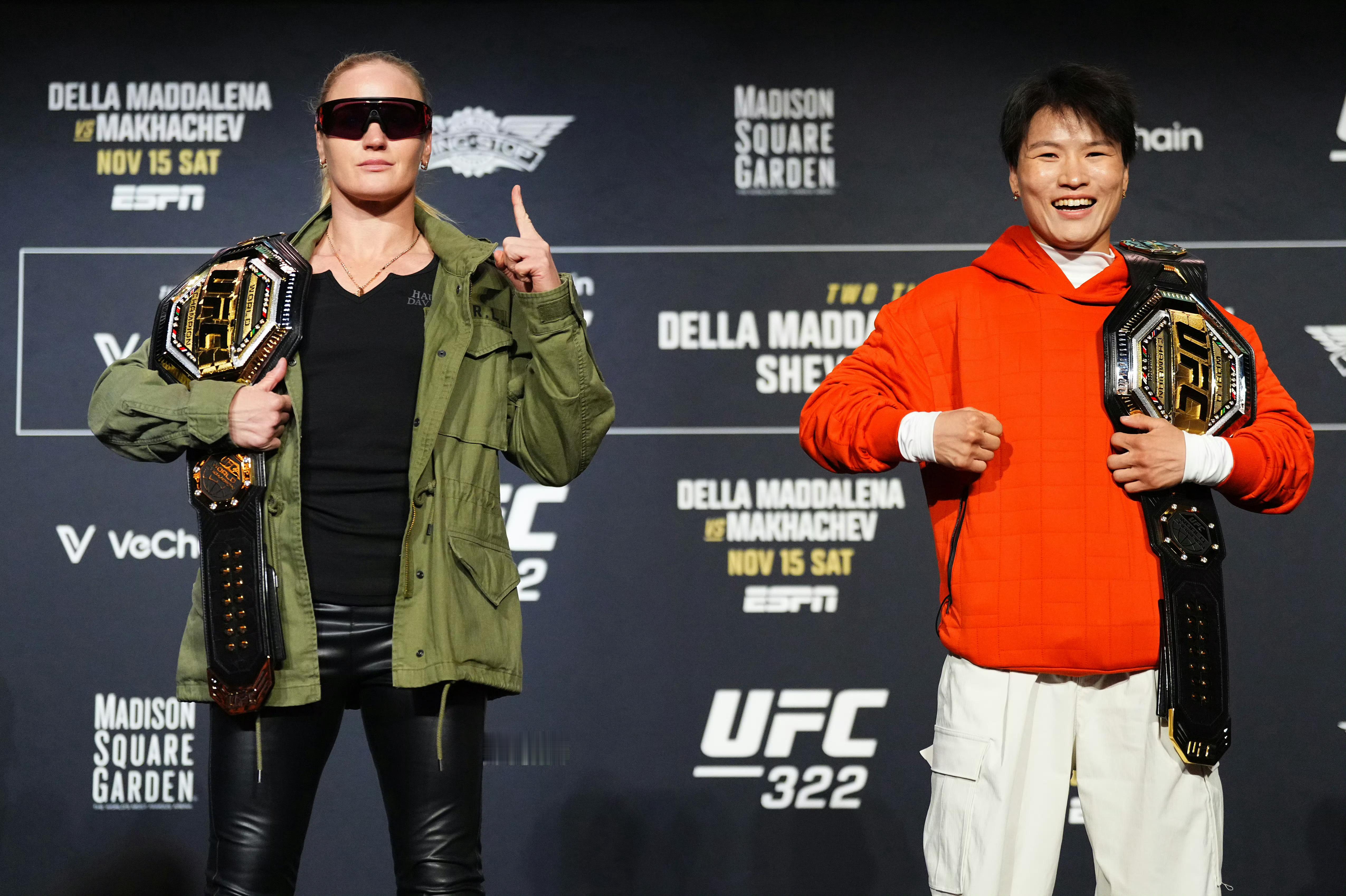 好期待张伟丽与舍甫琴科这张大战!北京时间周日上演!这次张伟丽主动放弃草量级(115磅)金腰带,升重10磅挑战蝇量级冠军“子弹”舍甫琴科。若获胜,她将成为中国首位UFC双量级冠军(草量级+蝇量级)。加油!👏