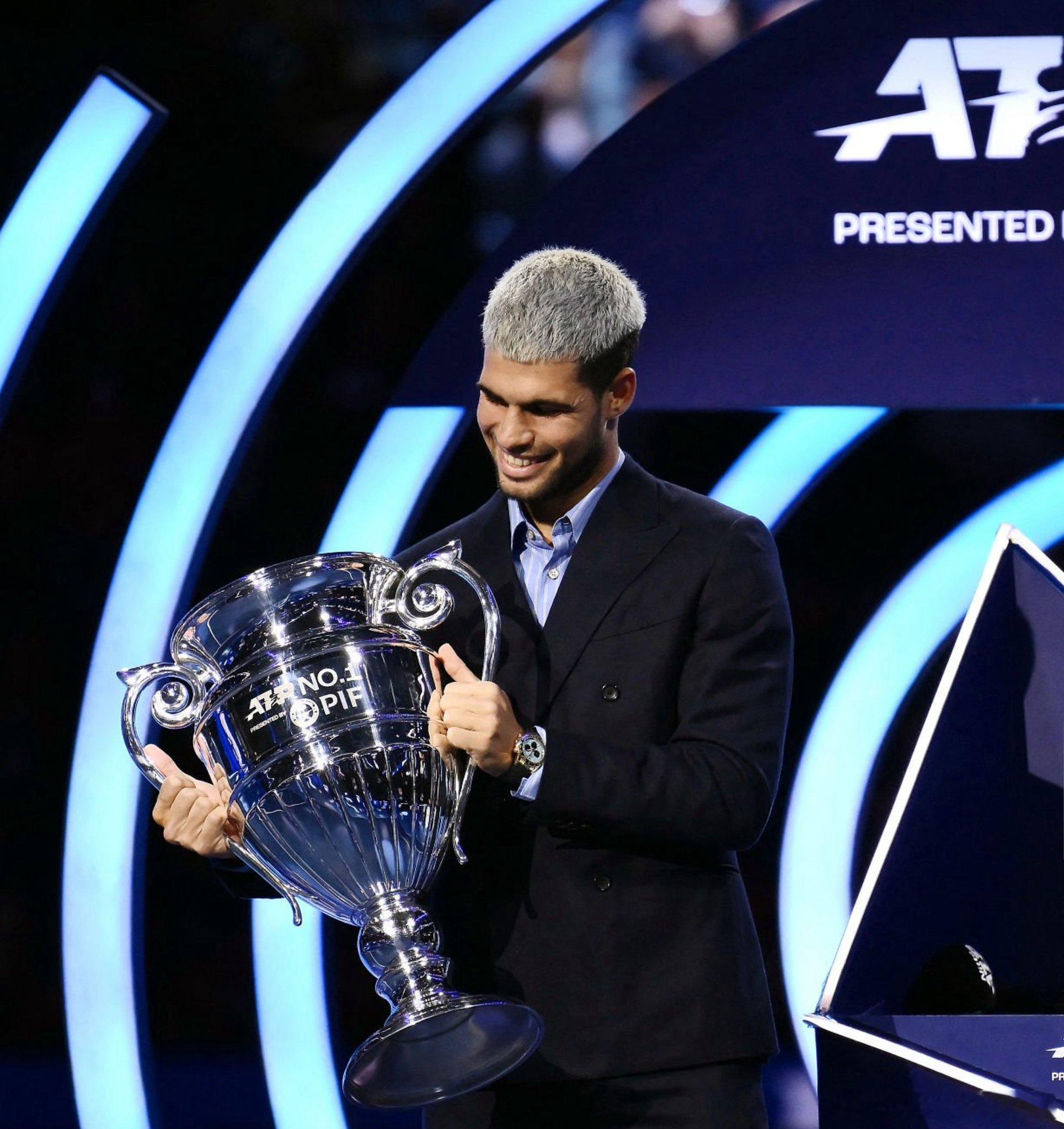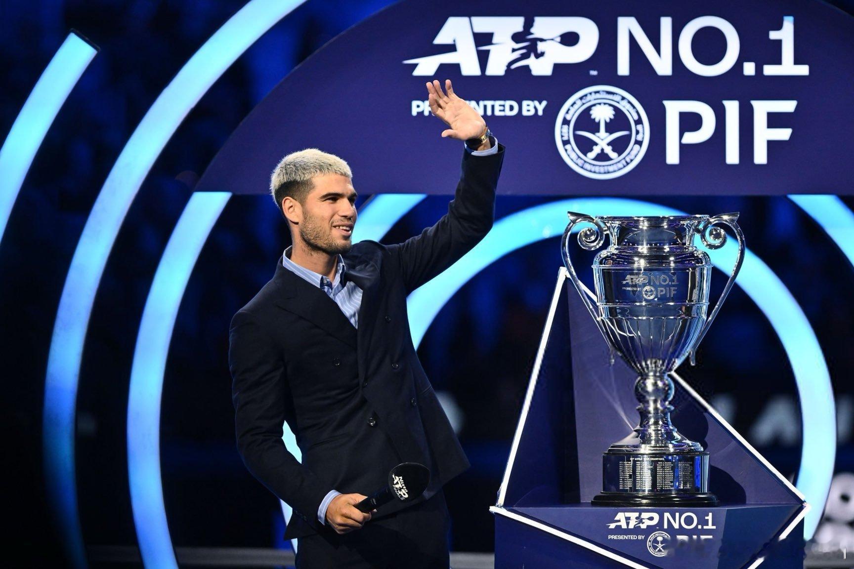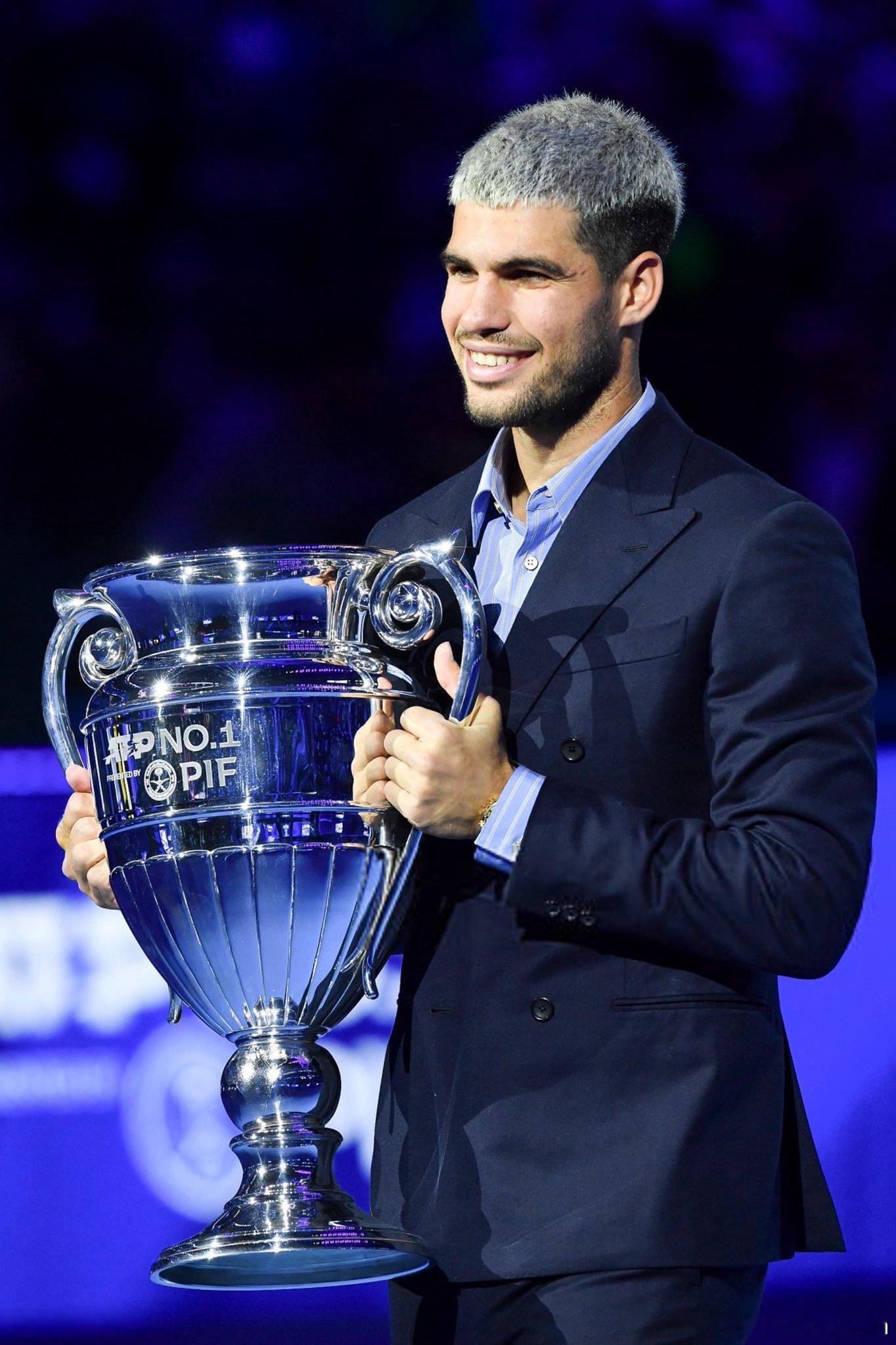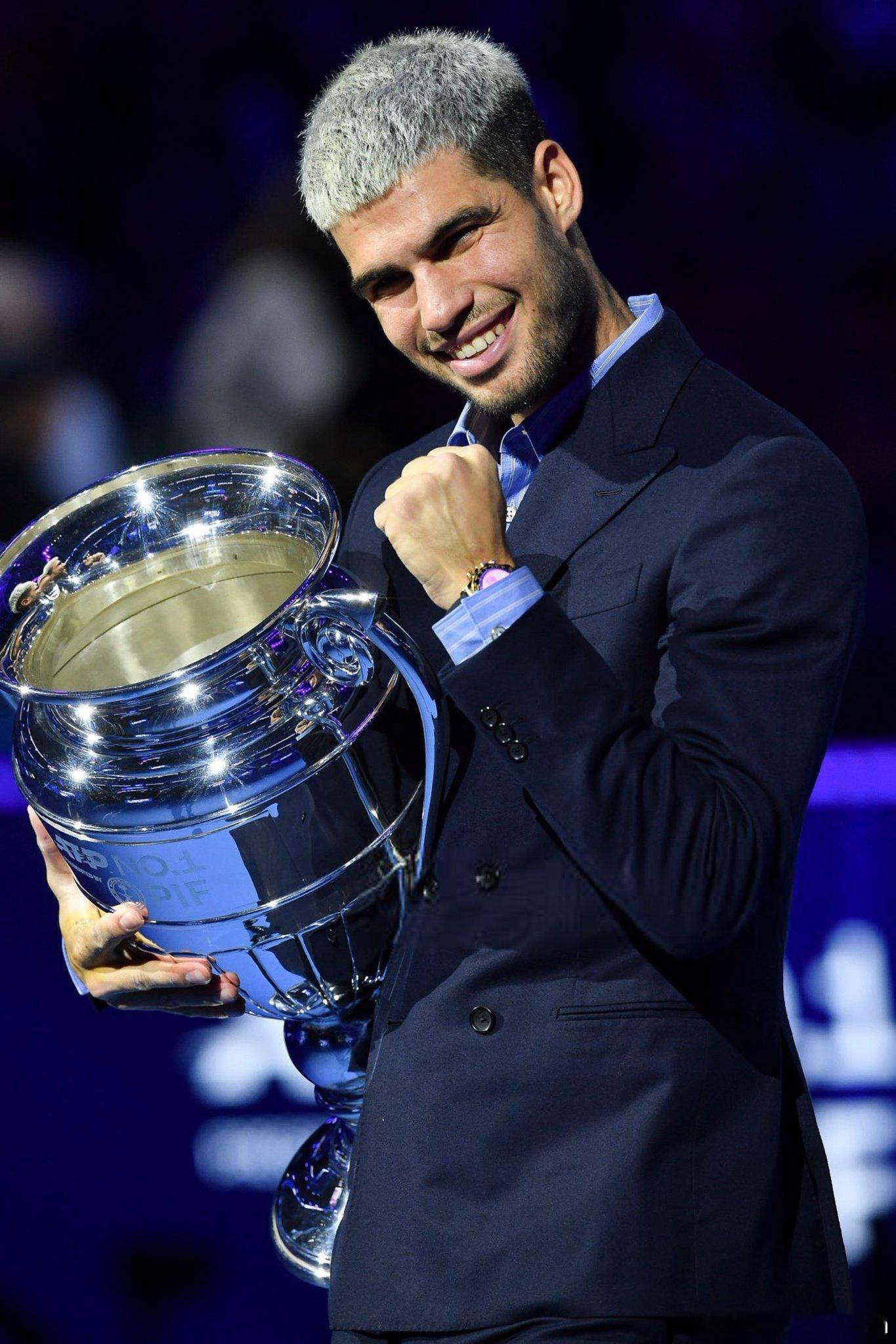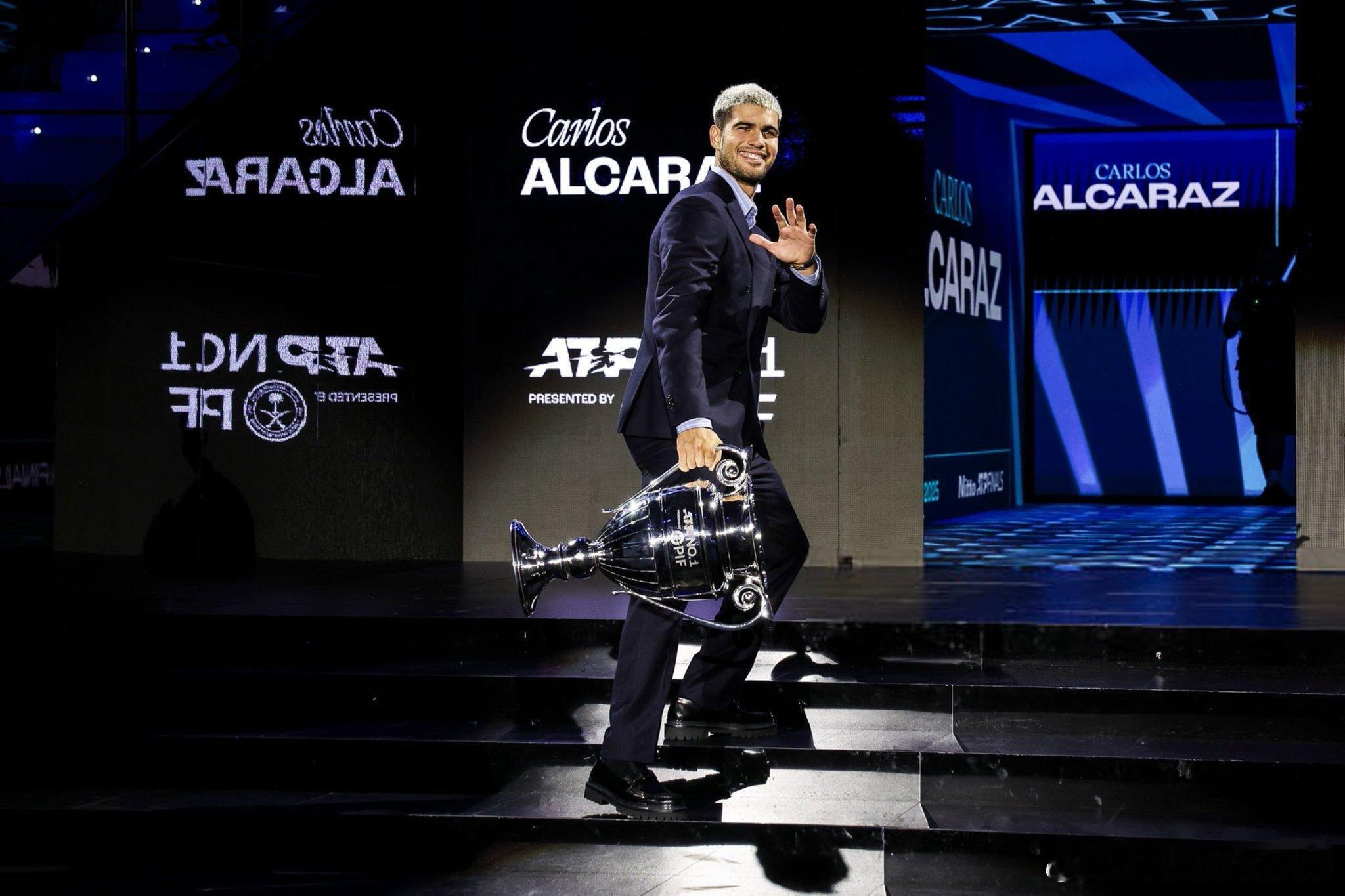 昨天阿尔卡拉斯 领取年终第一奖杯高清大图来袭!