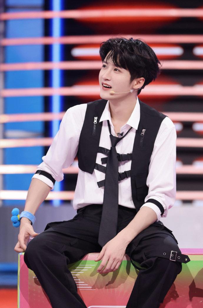 黄明昊粉色袖扣,黄明昊黑西装粉色花朵扣,满分帅气的小贾上线啦,期待住和你的现场的