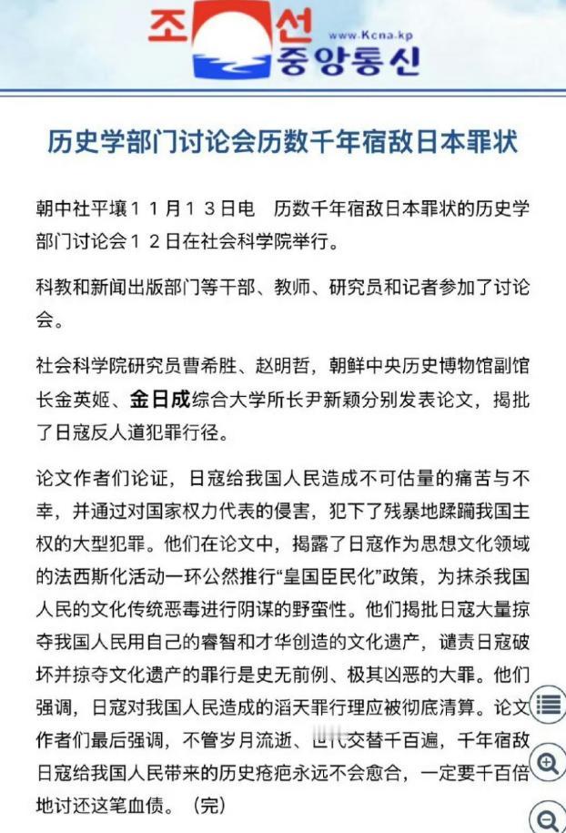 高市作秀! 高市早苗星期五(11月14日)说,她已准备好与朝鲜领导人金正恩“面对面”会谈,以期建立“富有成效的新型日朝关系”。 在此之前,朝鲜历史部门举行了一个研讨会,历数千年宿敌日本罪状。 据了解,:朝鲜有拉致日本人的事件,日本电视台隔三岔五拿这个话题说事。