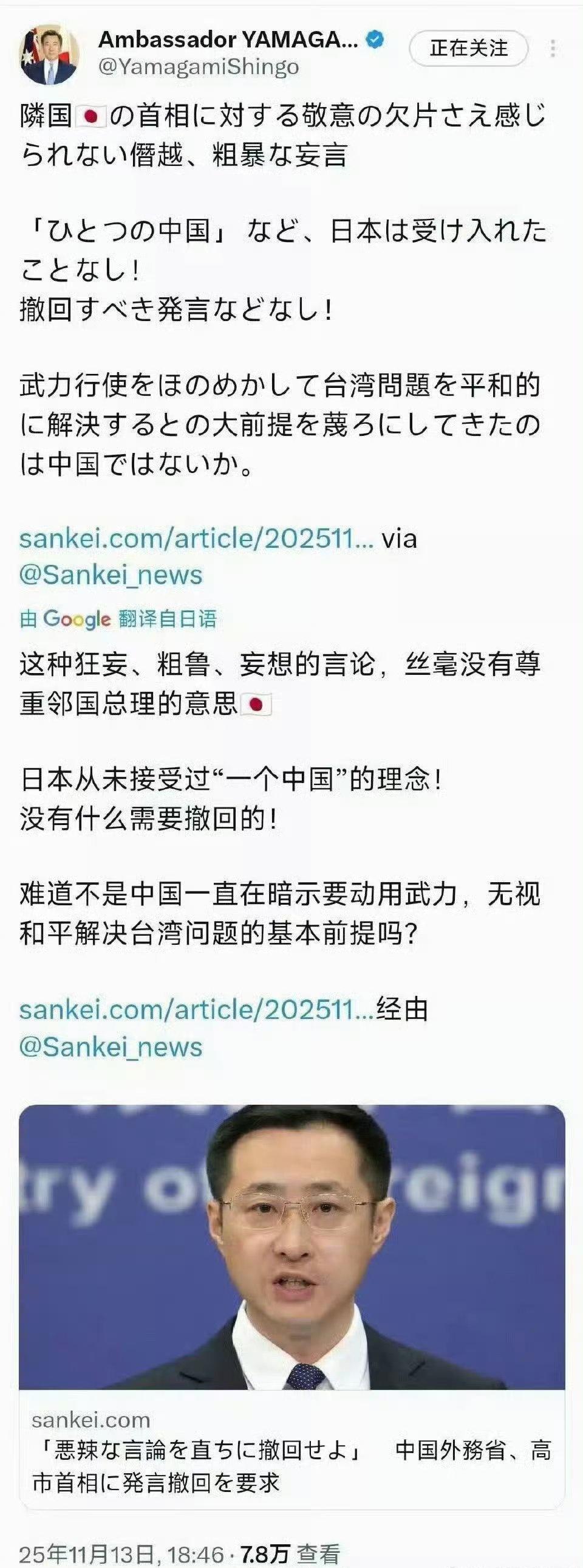 日本从未接受过“一个中国”原则! 日本前驻澳大利亚大使扬言日本从未接受过“一个中国”原则,没什么要撤回的!