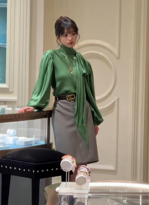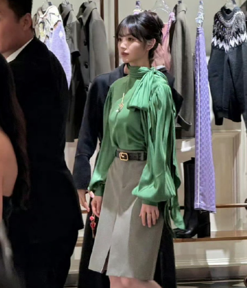 田曦薇身着绿衣灰裙,该稳重时尽显端庄,该俏皮时活泼灵动。轻松拿捏绿色系,韵味十足,每一帧都美到心坎上啦