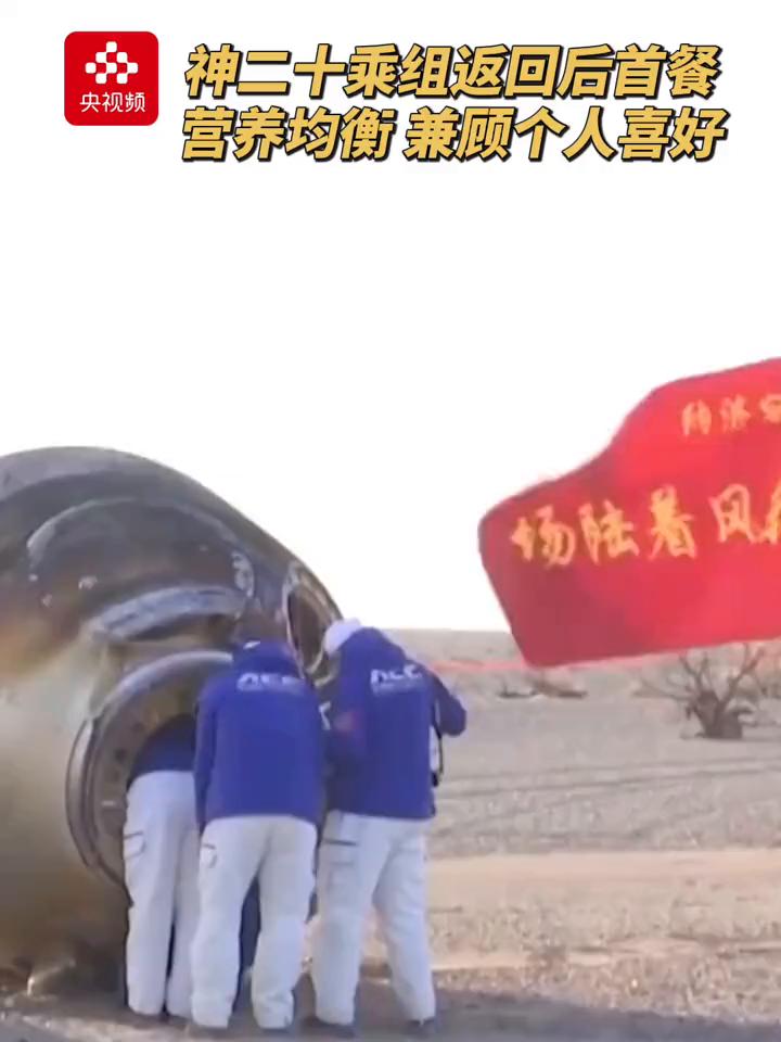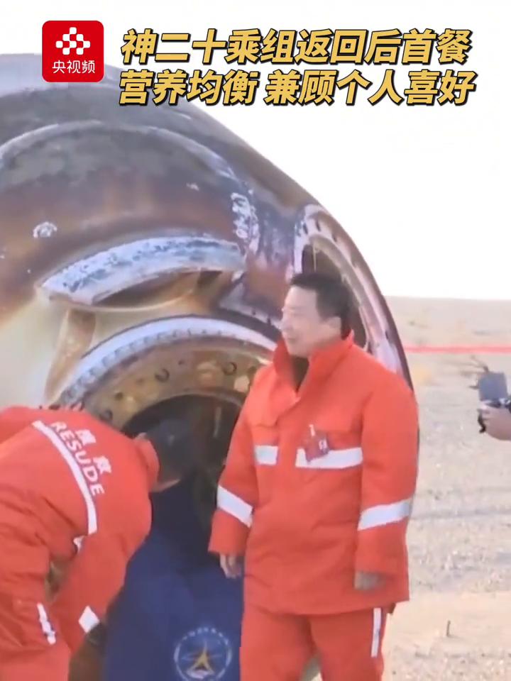神二十乘组返回后首餐,营养均衡兼顾个人喜好。 出征的饺子,返回的面。三名航天员点